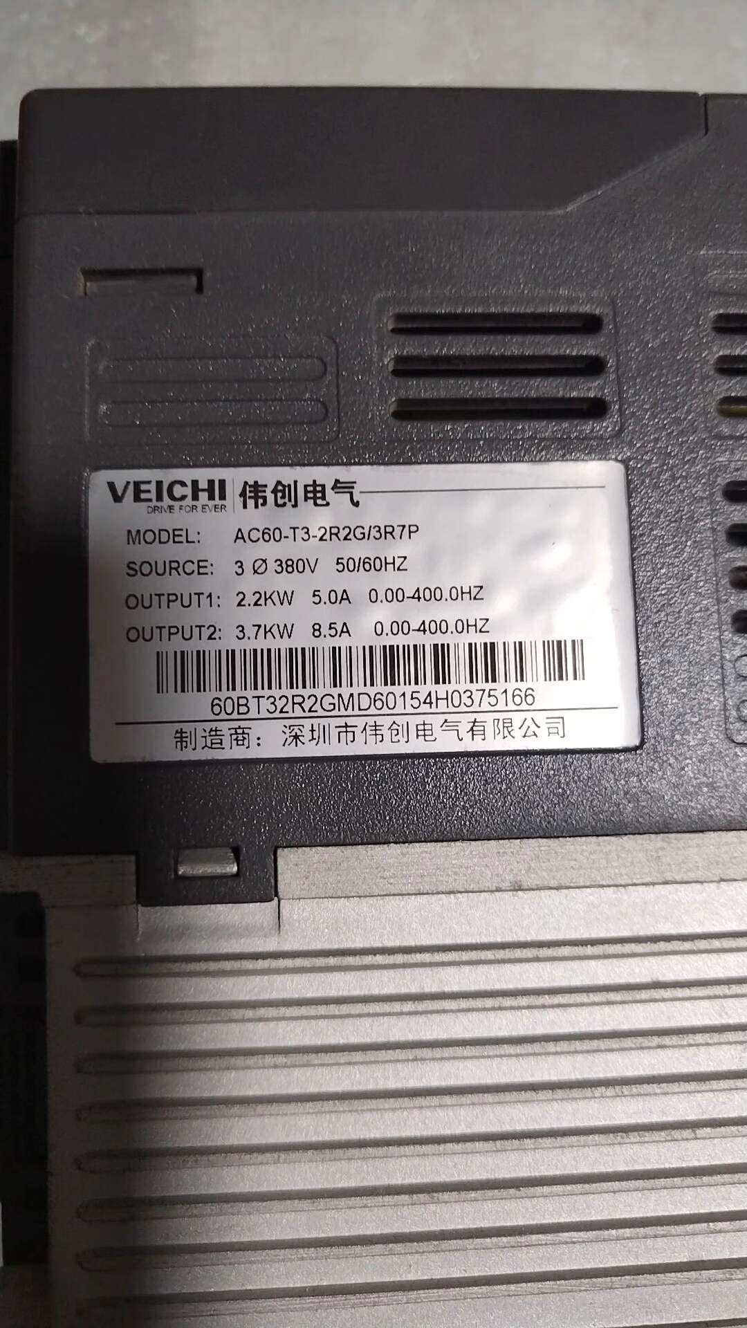 > 伟创变频器AC60-T3-2R2G/3R7P 2.2kw/