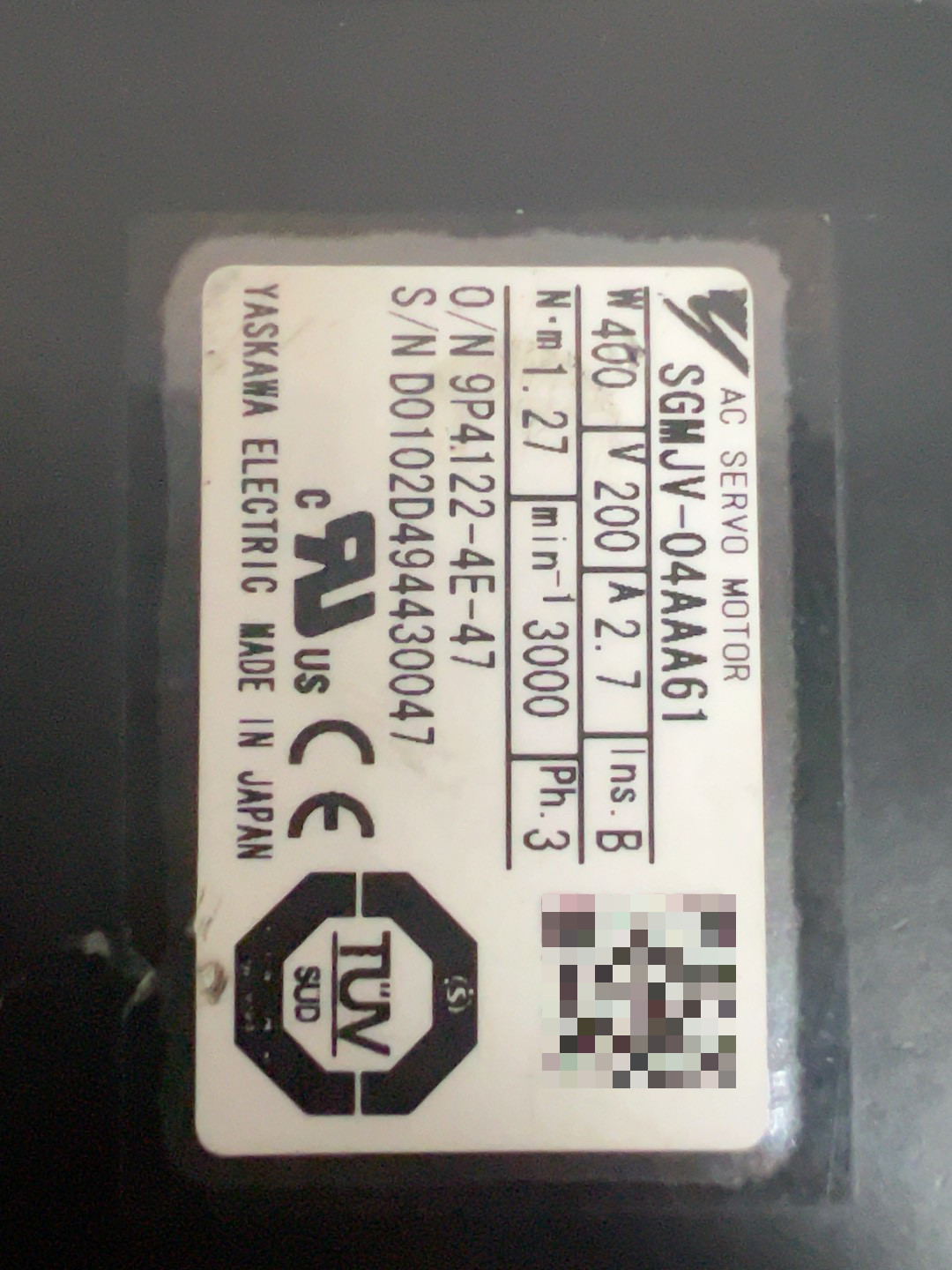 安川伺服电机SGMJV-04AAA61,400W,原装正品,