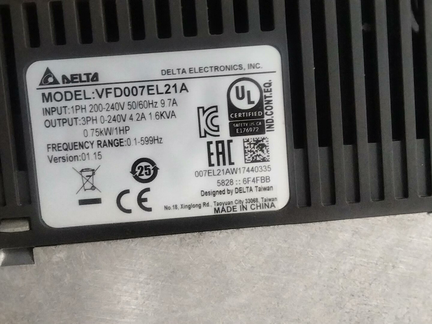 > 台达,VFD007EL21A,220V0.75千瓦,外观杠杠