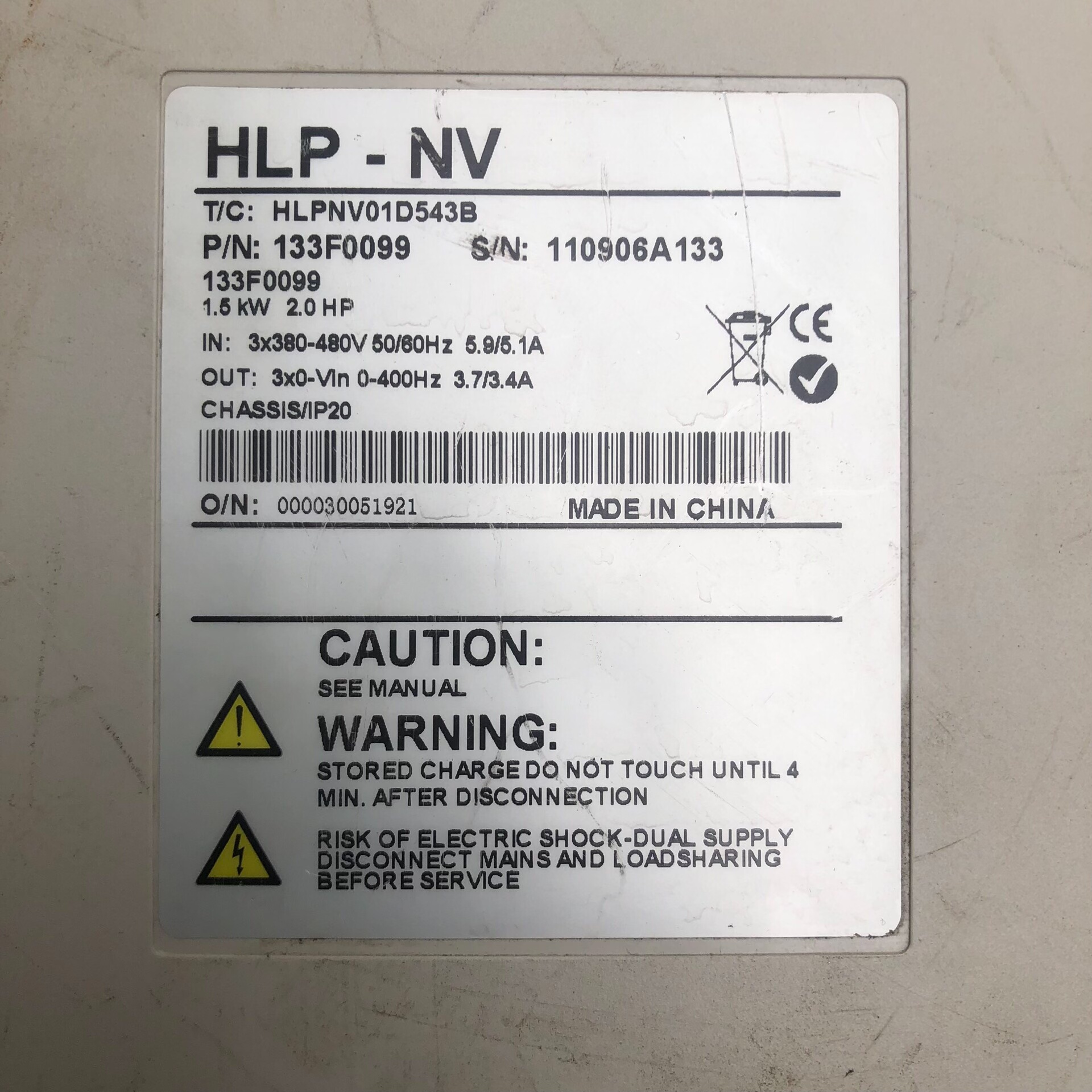 > 海利普1.5KW变频器 HLPNV01D543B
