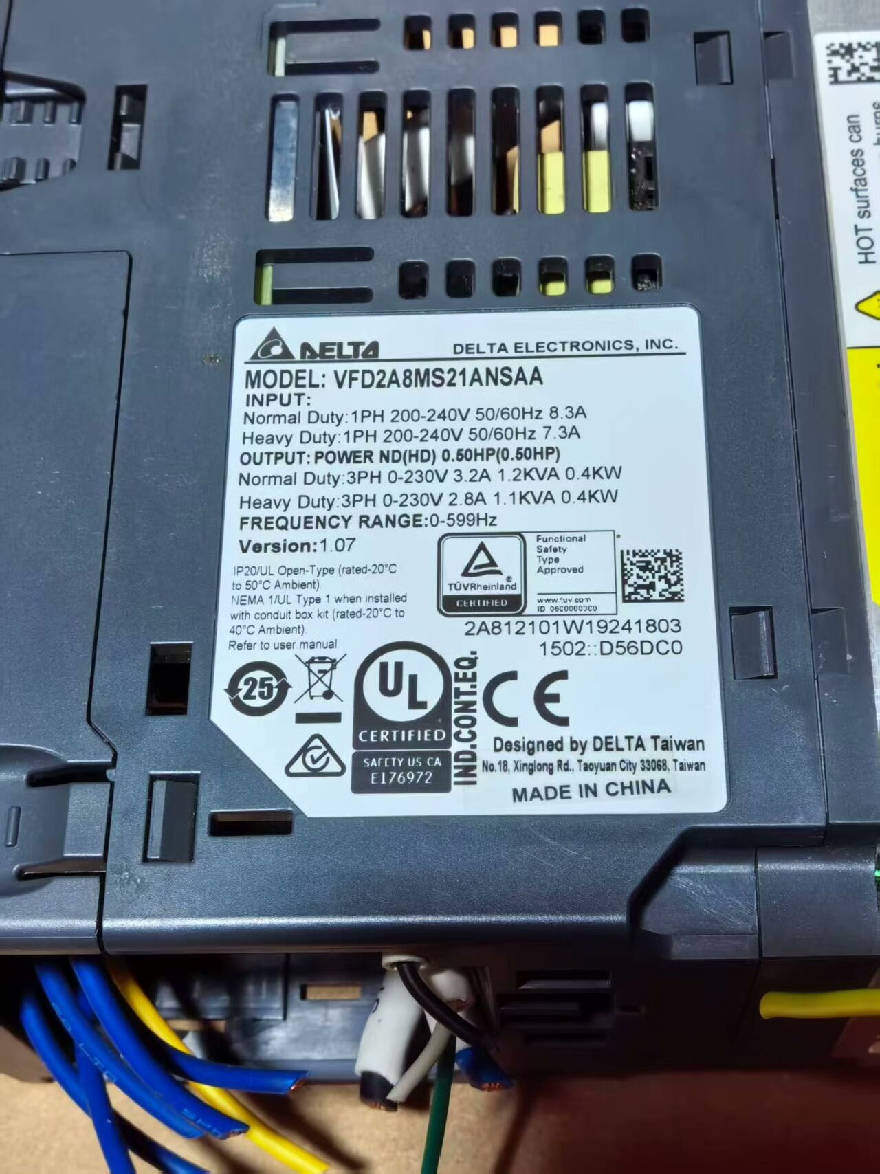 > 台达变频器 VFD2A8MS21ANSAA,0.4KW 2