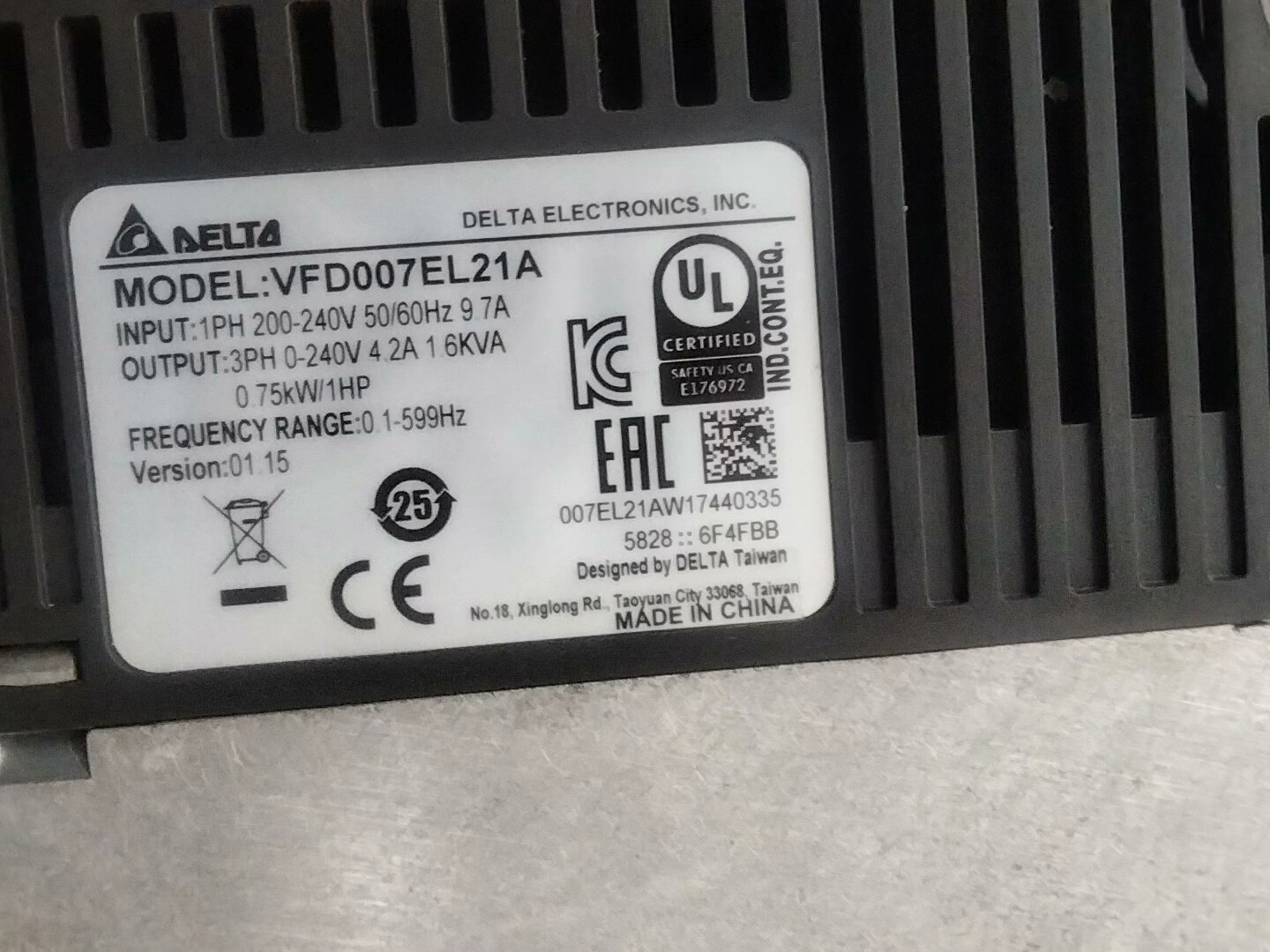 台达,VFD007EL21A,220V0.75千瓦,外观杠杠