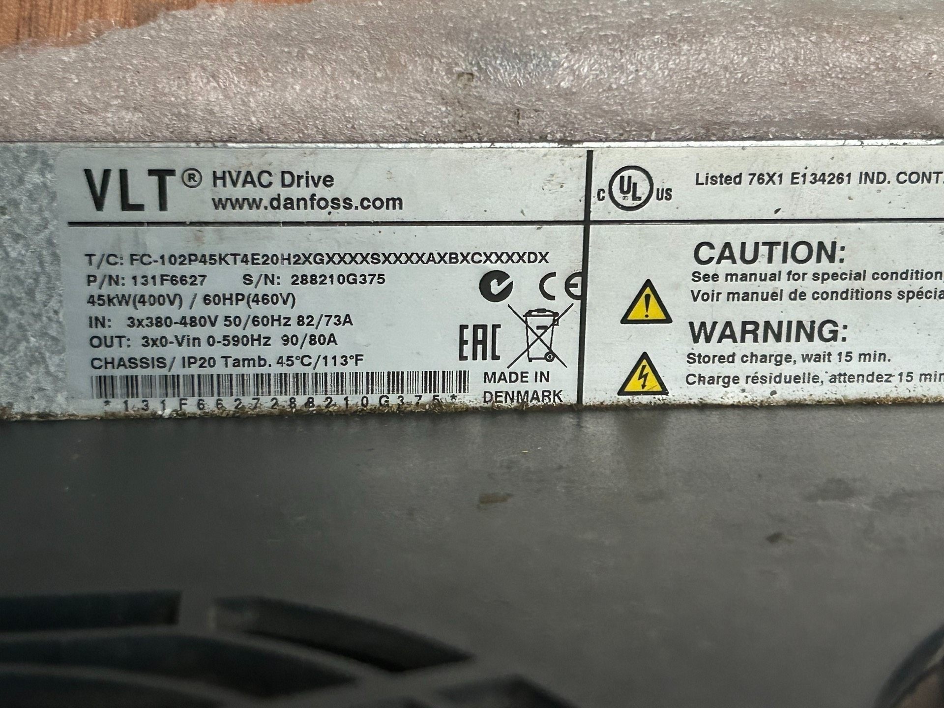 丹佛斯VLT HVAC Drive变频器 45KW/60HP