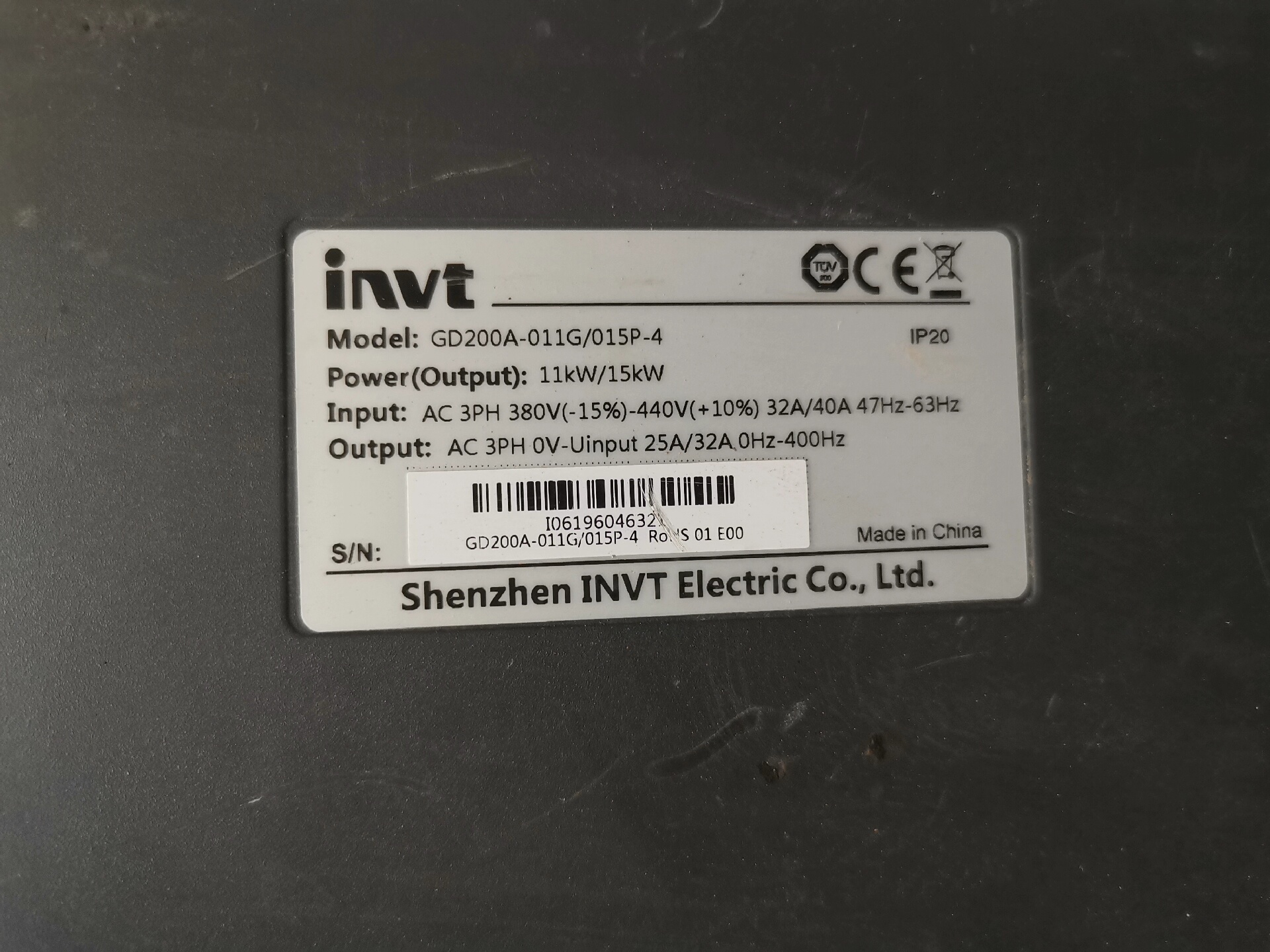 拆下来的英威腾GD200A-011G/015P-4已经测试功