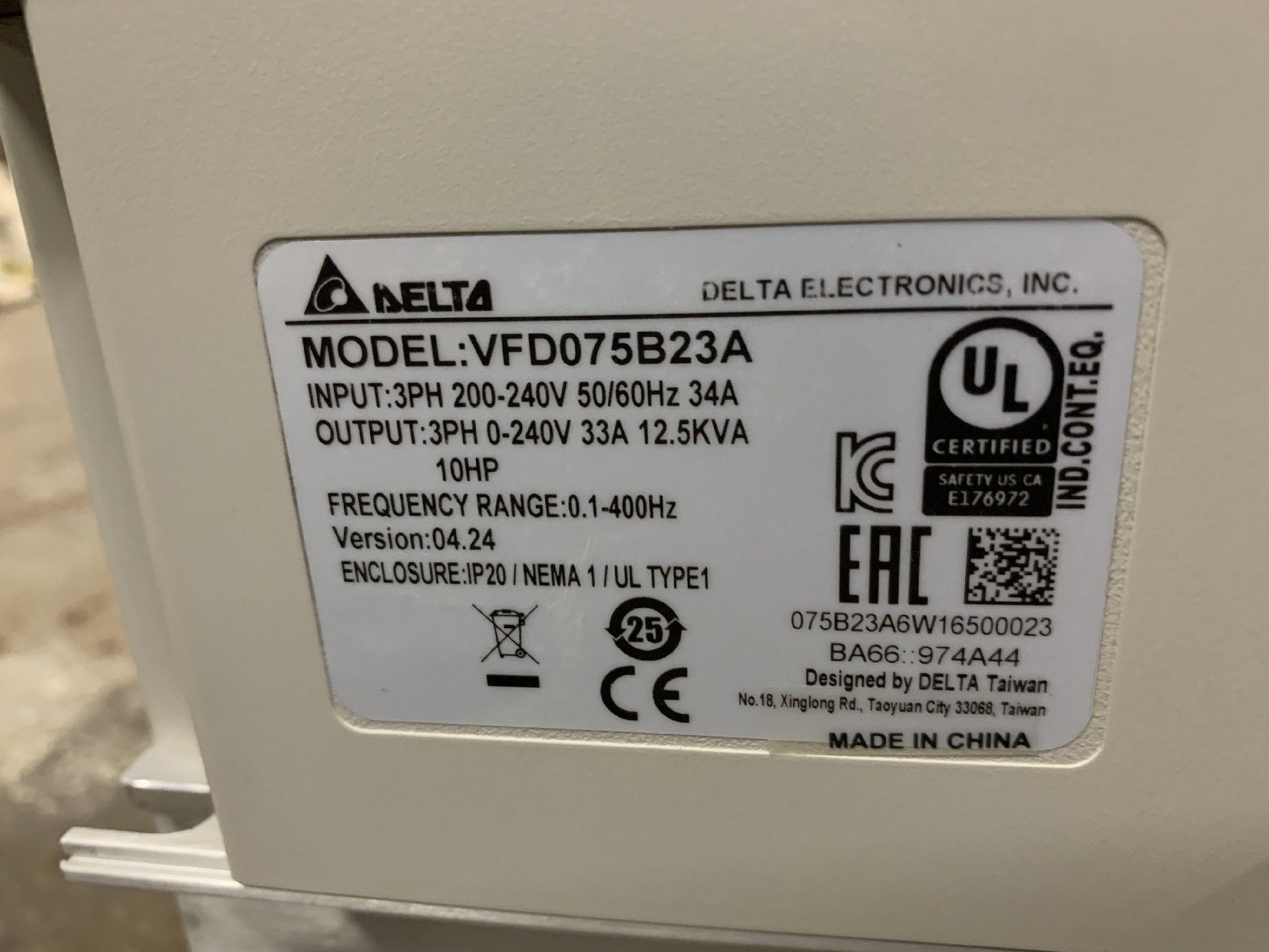 台达VFD-B变频器7.5KW,220V,VFD075B23