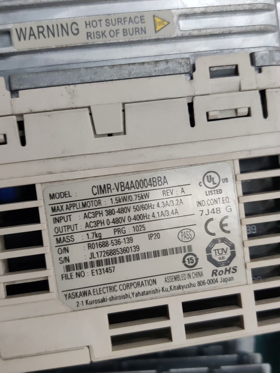 安川变频器CIMR-VB4A0004BMA原装拆机实物拍摄,