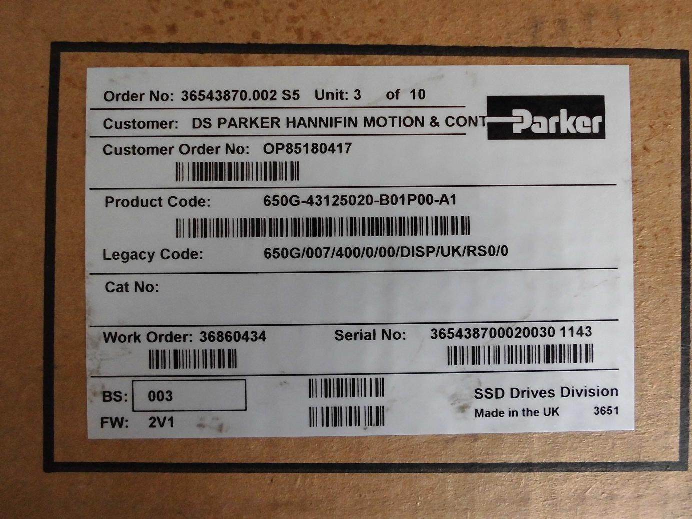 派克PARKER变频器650G/007/400/0/00/DISP/UK/RS0