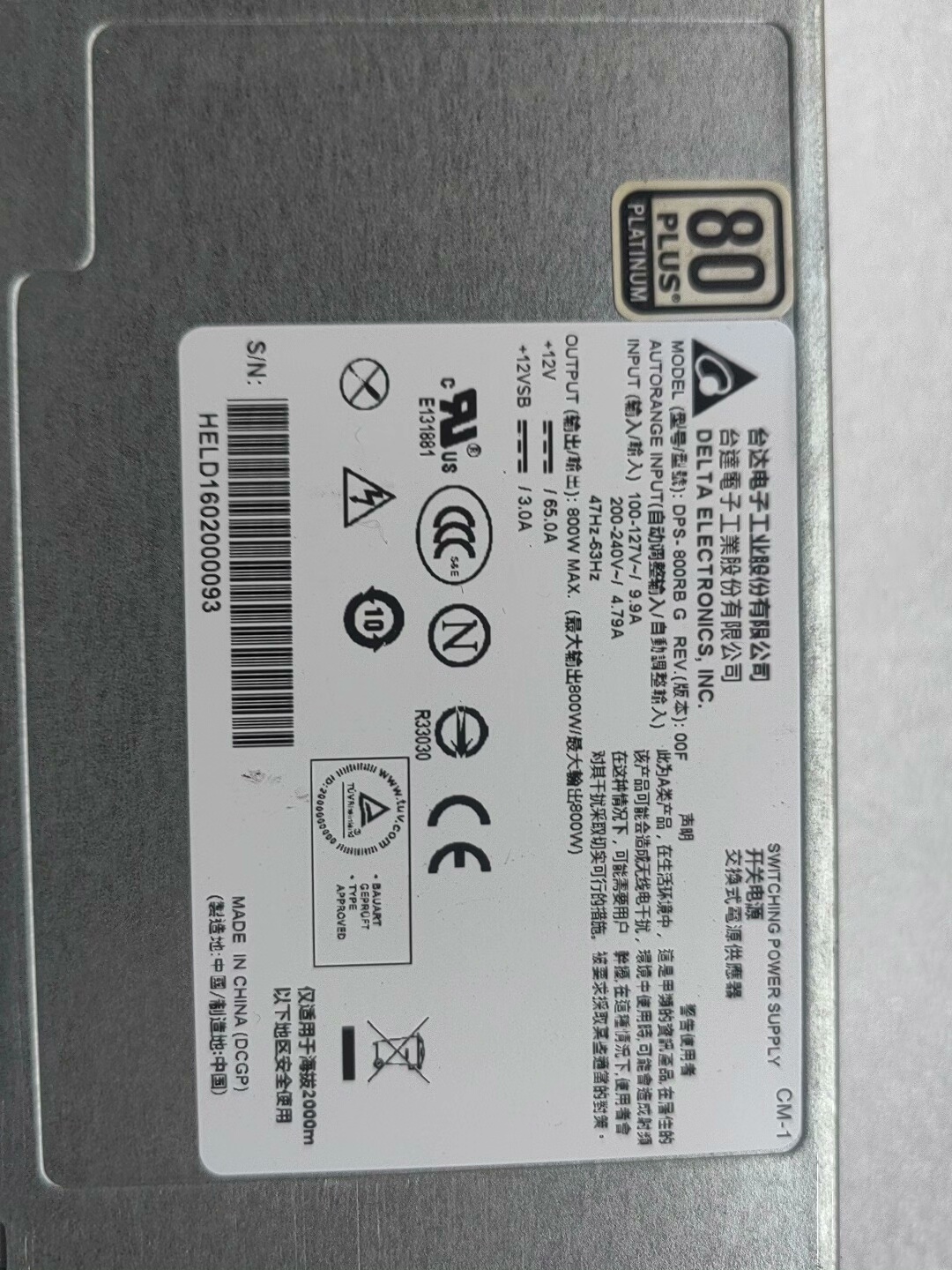 台达原装正品拆机电源 DPS-800RB G 800W RE