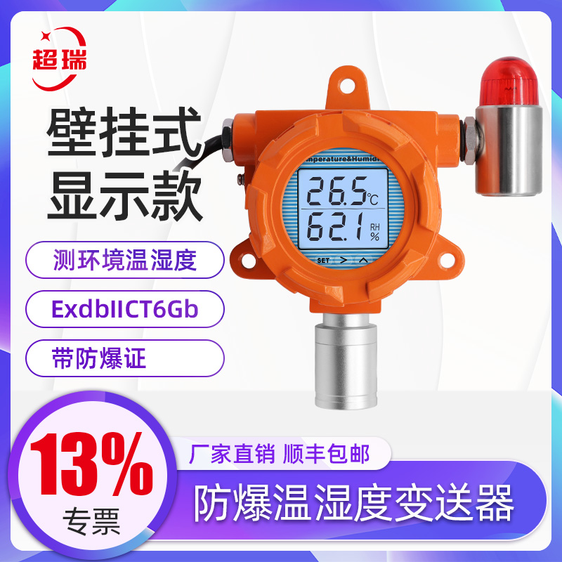 > 超瑞防爆温湿度变送器报警传感器温湿度计检测仪4-20ma工业级壁挂