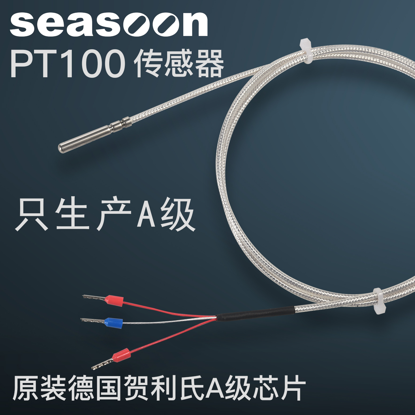 > PT100温度传感器铂热电阻电偶探头式温度检测防水A级测温测量