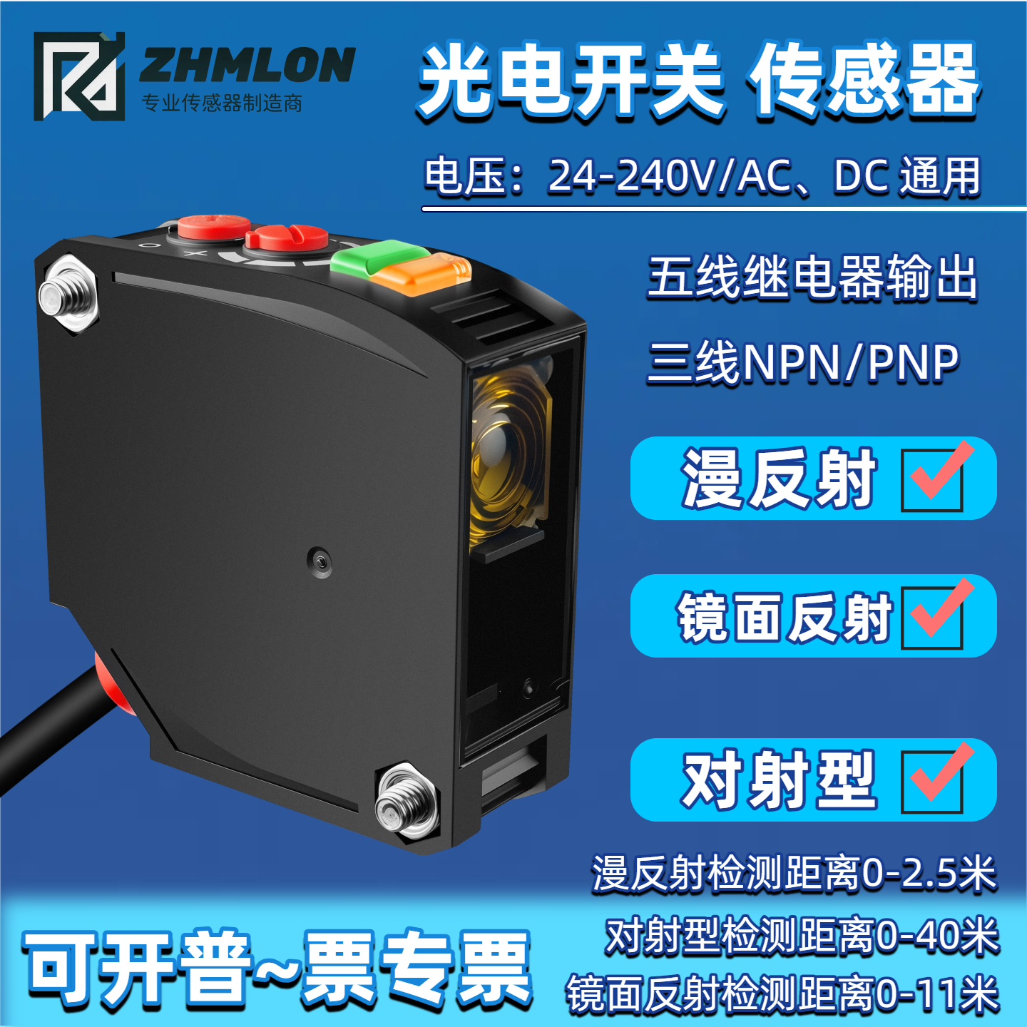 > 光电开关传感器红外对射漫反射五线24V220V感应开关E3JK-TR1211-C