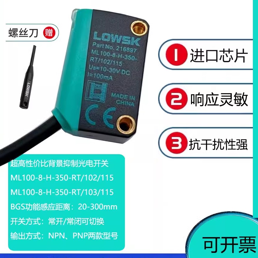 抗干扰背景抑制ML100-8-H-350-RT小光点激光漫反射传感器光电开关