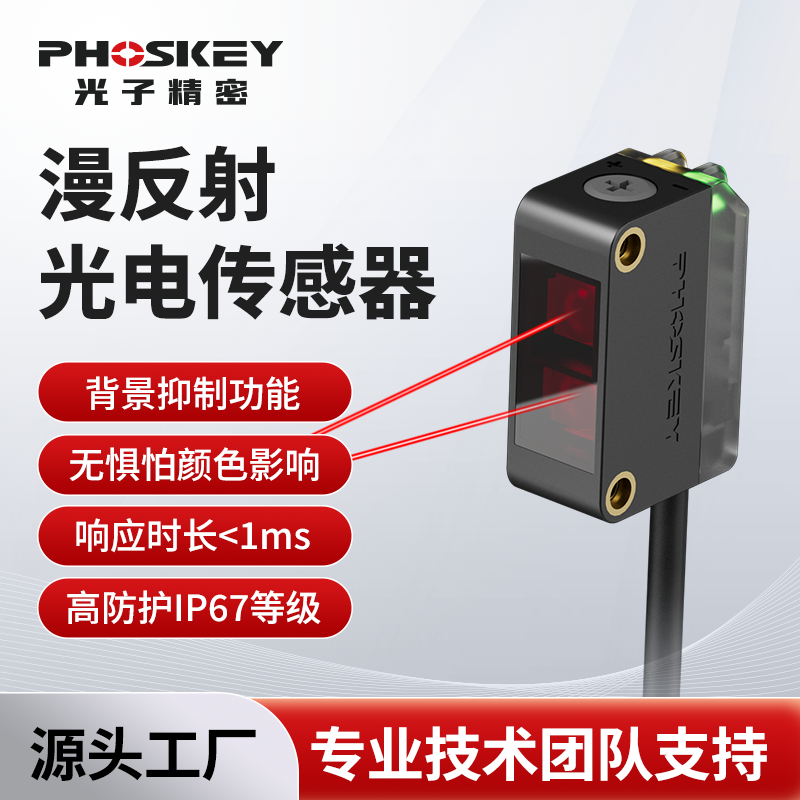 光子精密phoskey漫反射方形光电开关传感器感应背景抑制激光对射