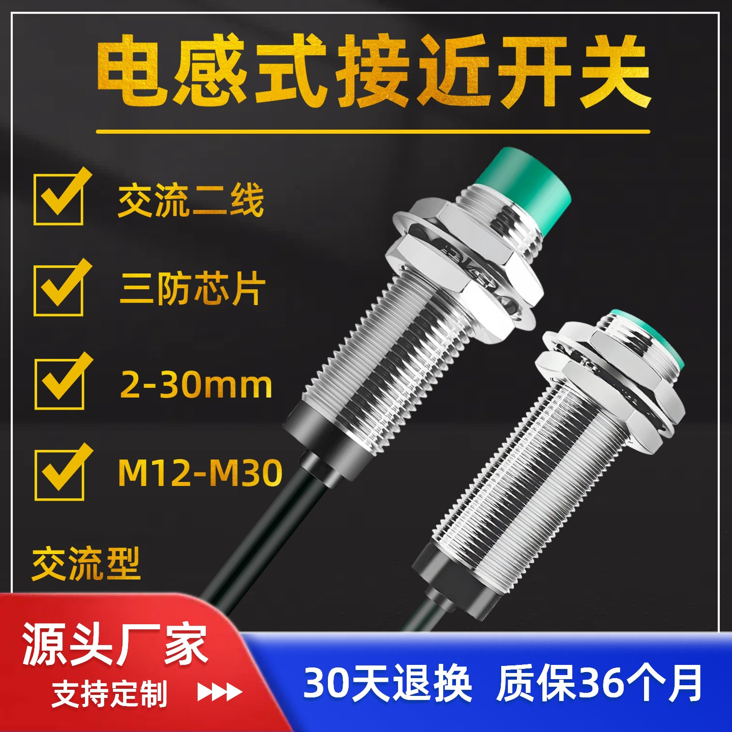 接近开关传感器220V交流二线电感式金属感应开关24V防水M12M18M30