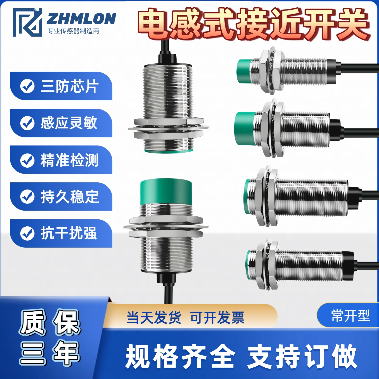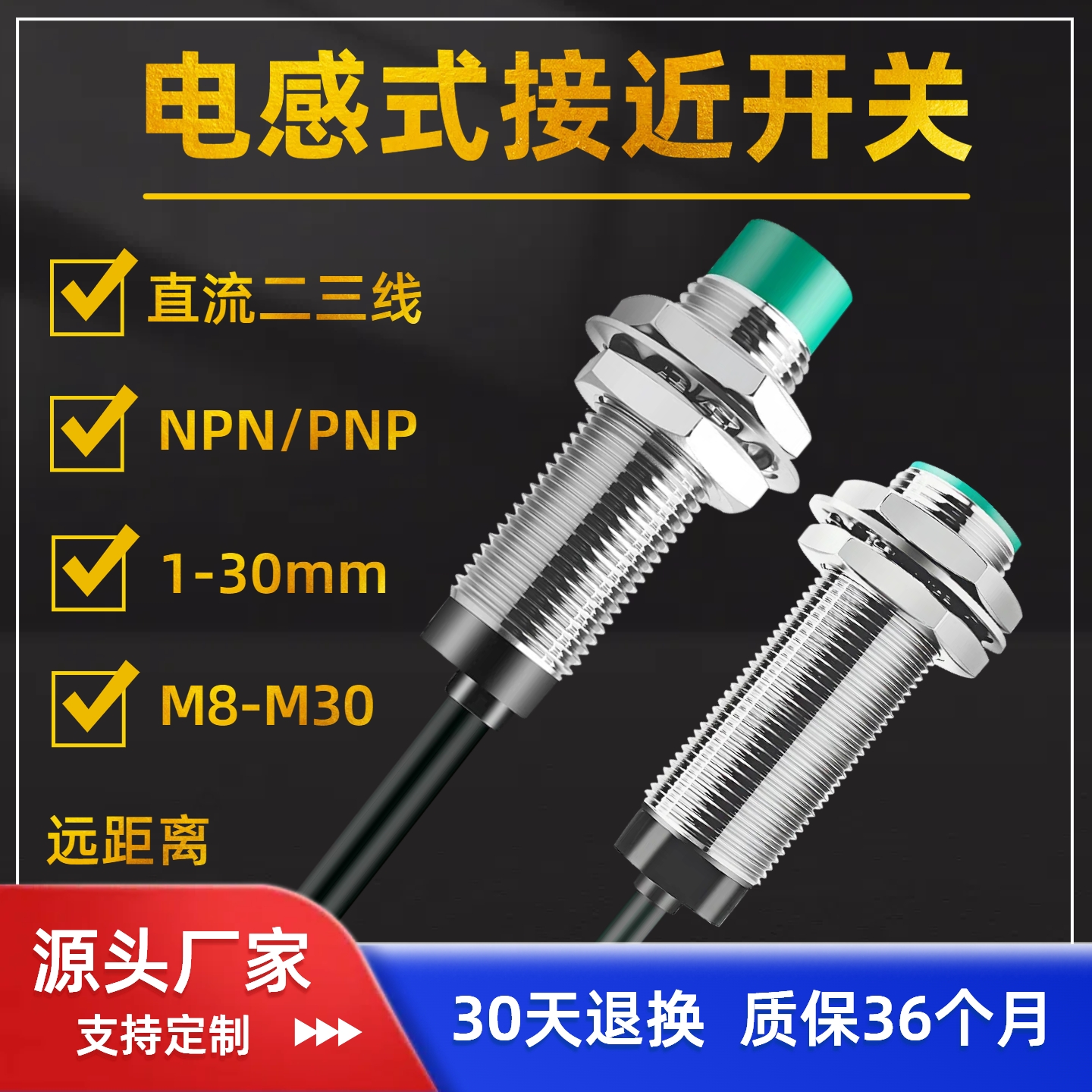 M12接近开关三线M8 M18 M30二线常开NPN/PNP金属感应传感器12V