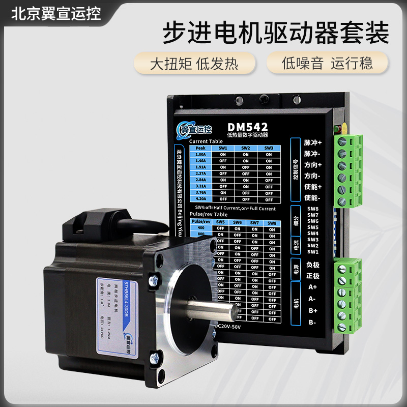 > 两相四线57步进电机套装步距角1.8度DM542驱动器马达控制器57法兰