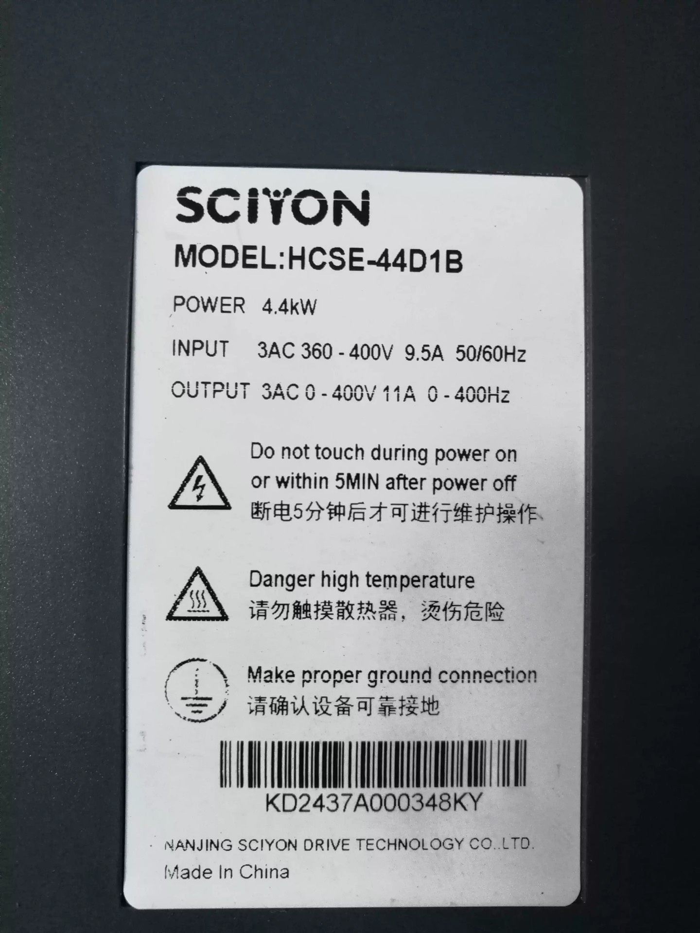 SCIYON伺服驱动器HCSE-44D1B,4.4KW,38