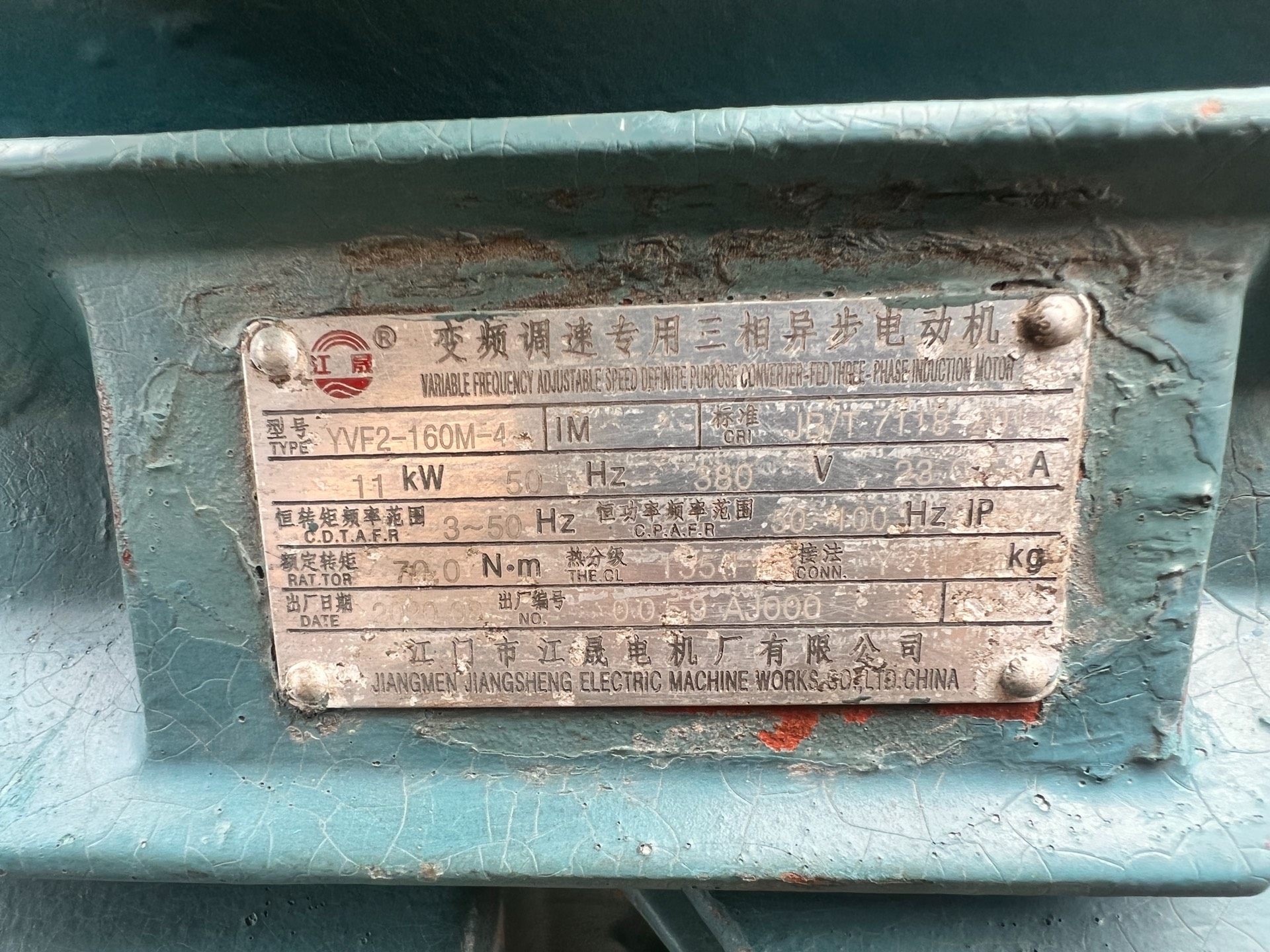 江门江晟电机,变频调速专用三相异步电动机,功率11千瓦,机子