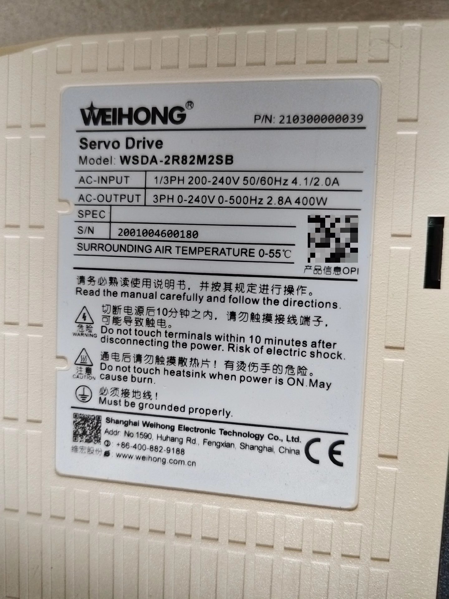 > WSDA-2R82M2SB 维宏交流伺服驱动器400W 全