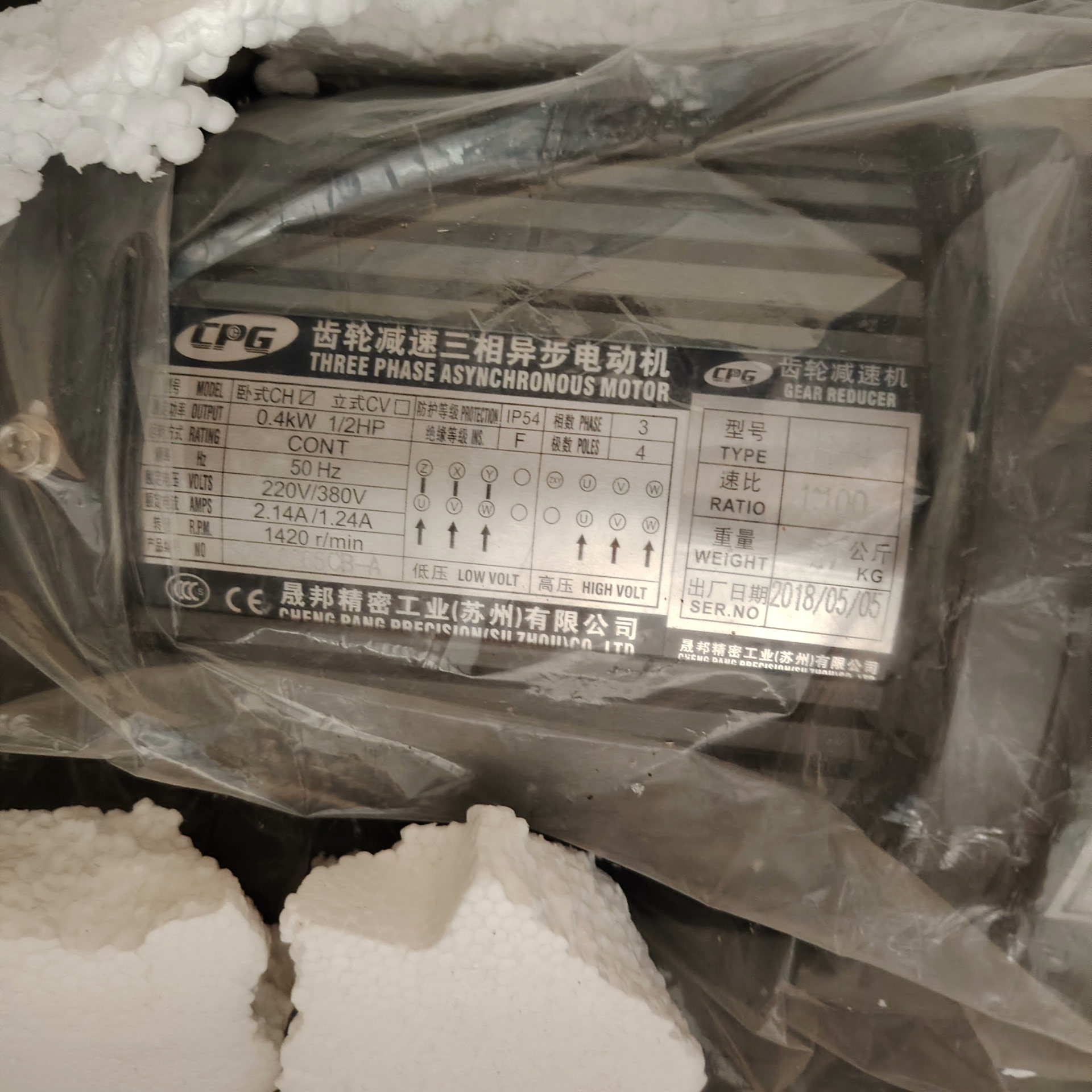 > 齿轮减速三相异步电机CH-4 速比1:100 27公斤