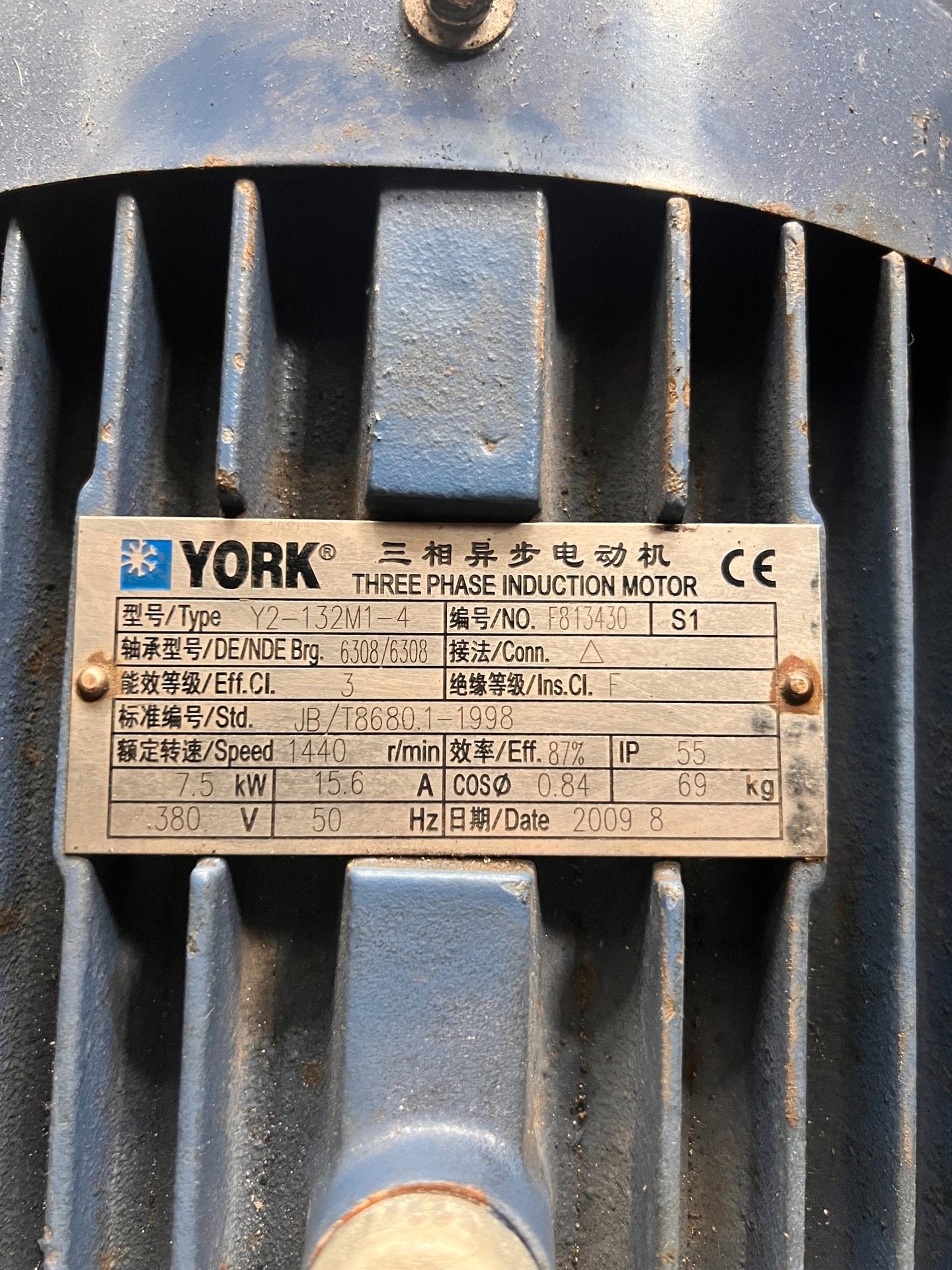 7.5千瓦YORK电机,转速1440.原装原线,机子正常使用