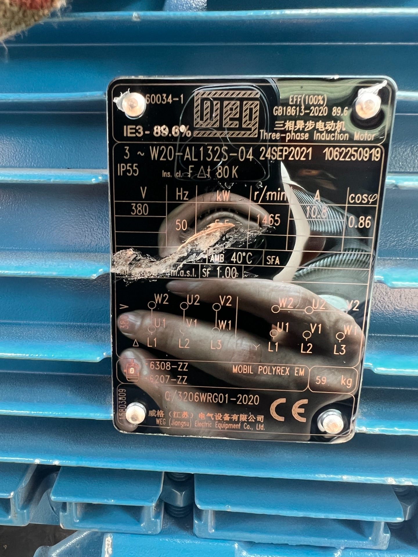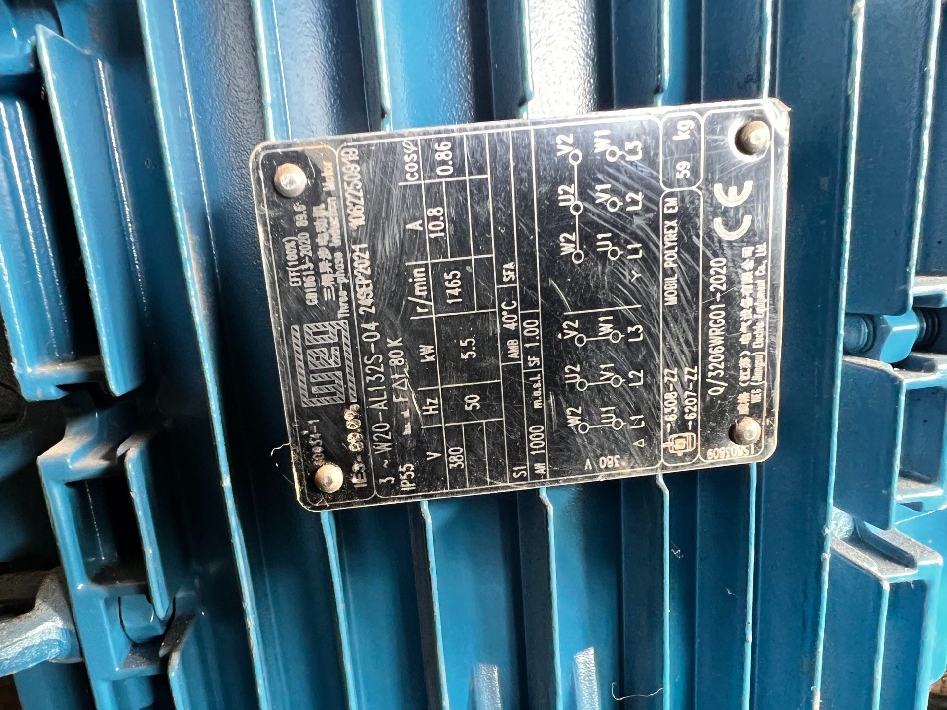 > 5.5千瓦铝壳电机,转速1465,威格牌子电机,仓库备用机,