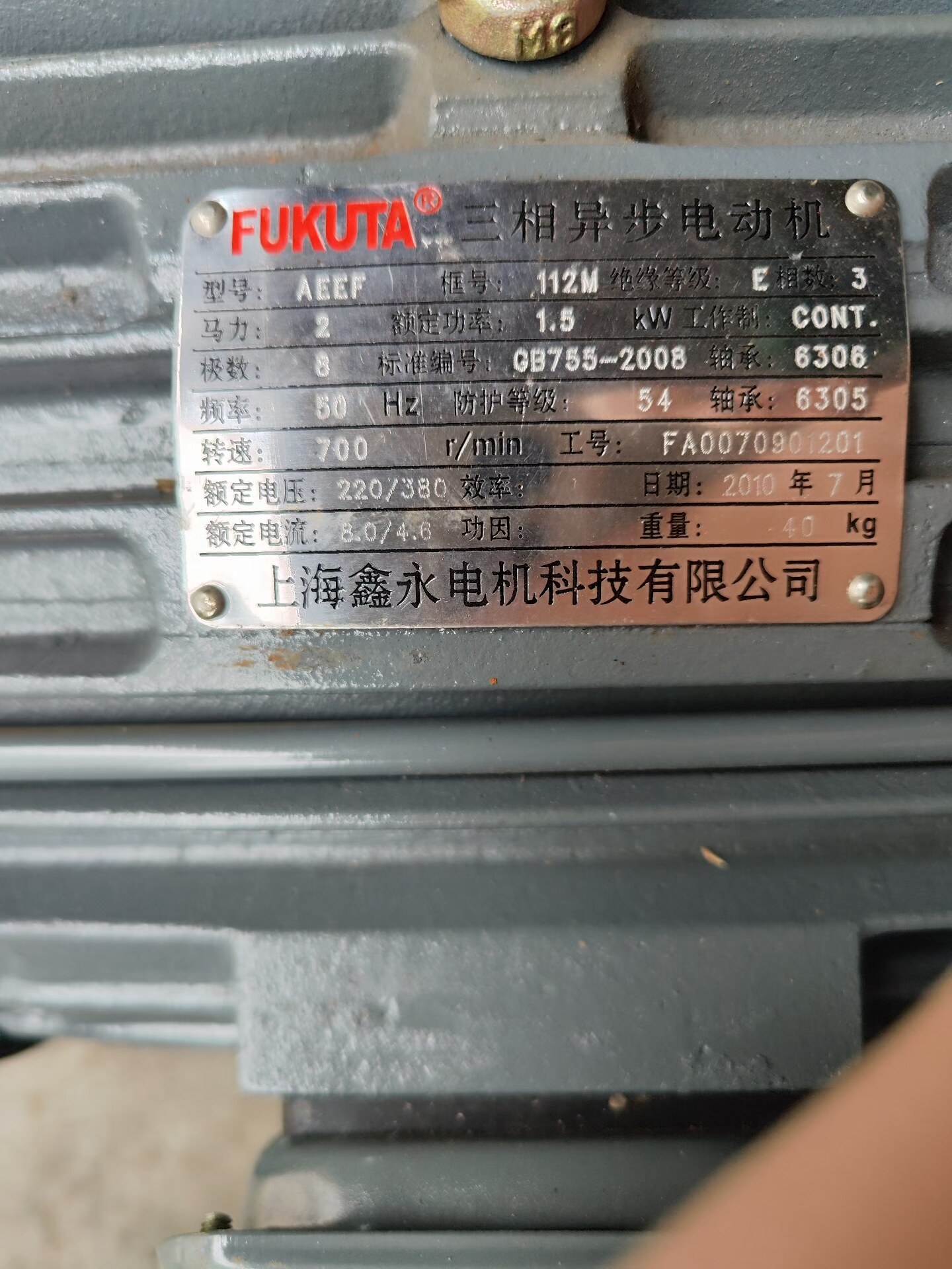 台湾富田FUKUTA电机,型号AEEF,功率1.5千瓦,8极