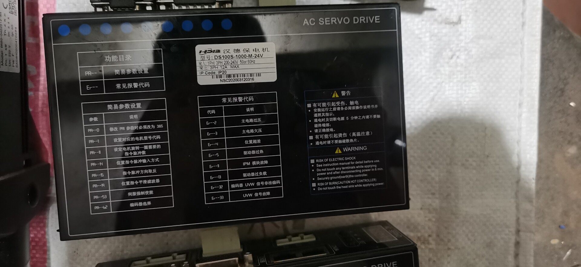 汉德保伺服套装,驱动型号;DS100S-1000-M-24V