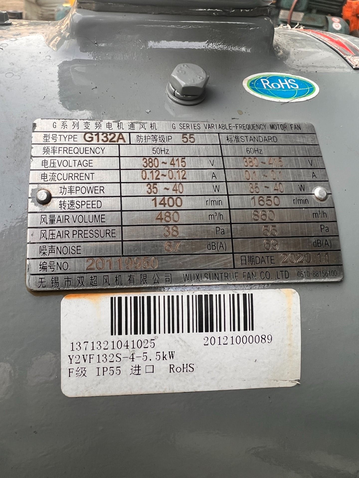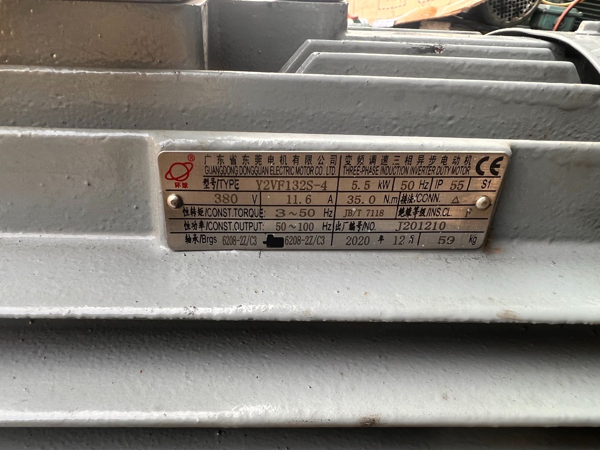 > 变频电机,5.5千瓦4极,东莞环球电机,原装原线,9成新,机