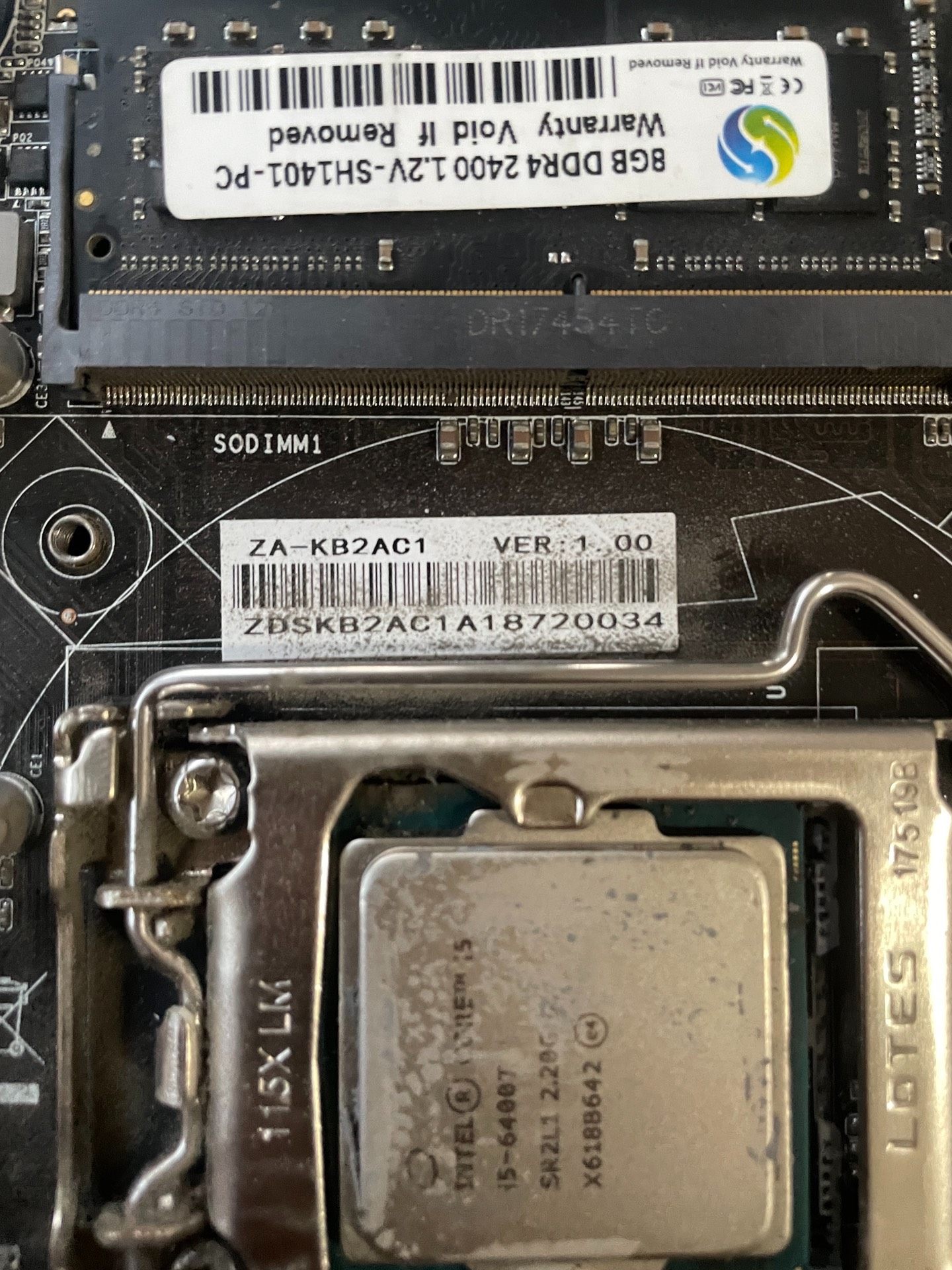 > 洛特斯ZA-KB2AC1主板+i5 6400T CPU+8G