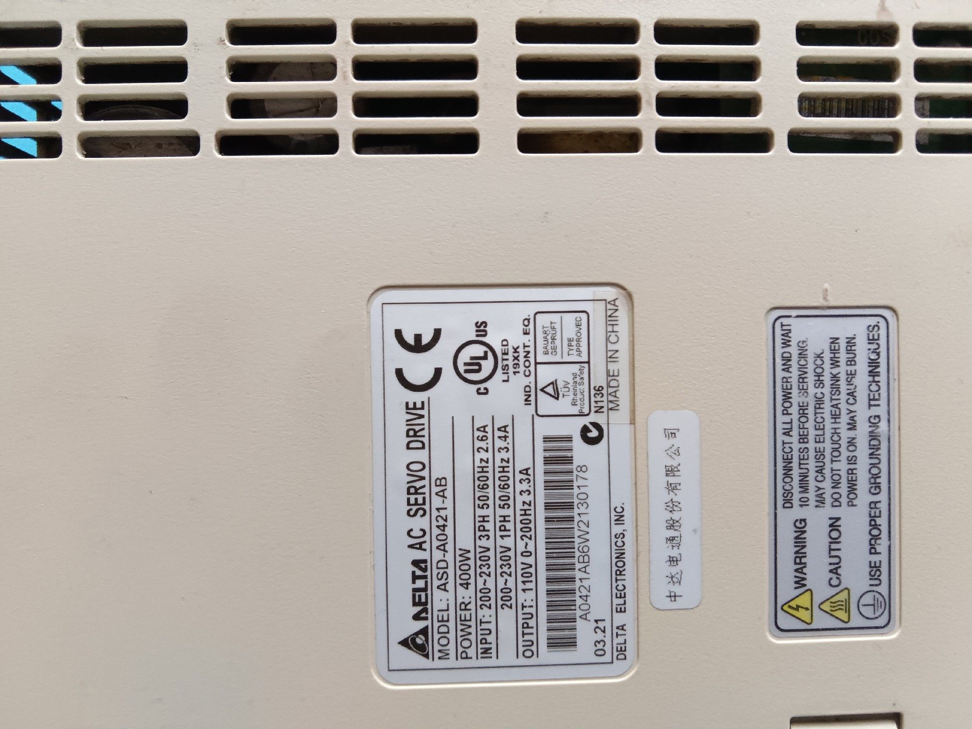台达400w驱动器ASD-A0421-AB