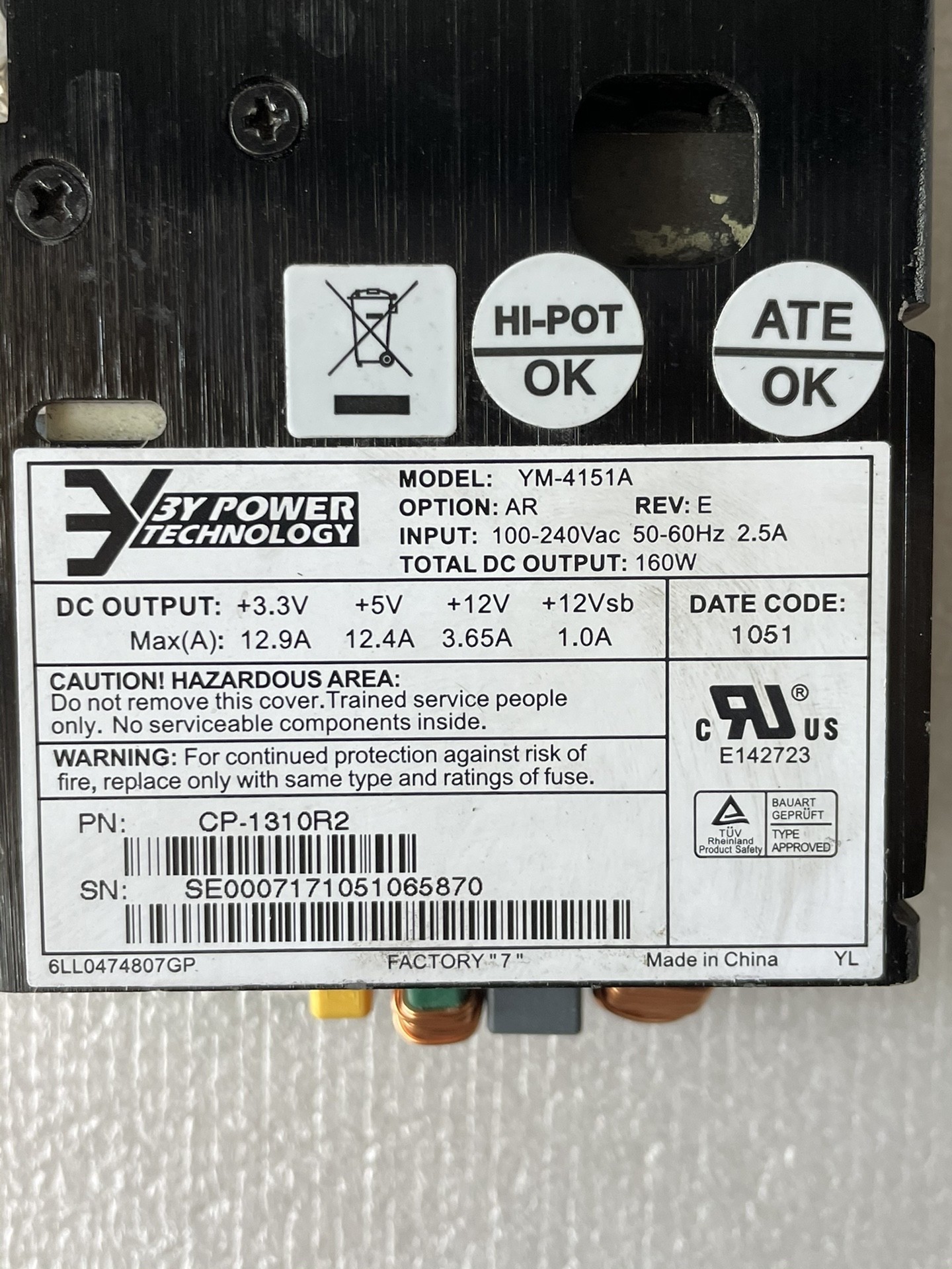 > 原装拆机 3Y电源 YM-4151A 工控机电源 设备电源