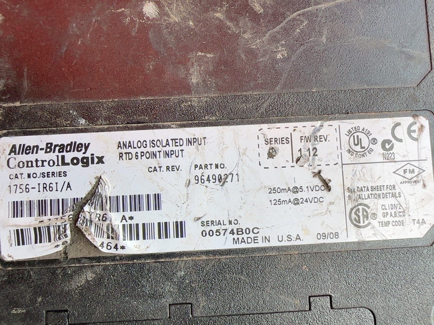 > 美国罗克韦尔AB PLC一张,型号:1756-IR6I/A