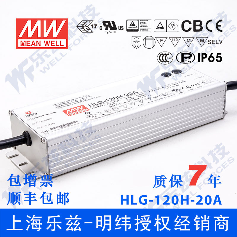 明纬20V LED电源120W HLG-120H-20AB 6A可调20V恒压调光7年质保