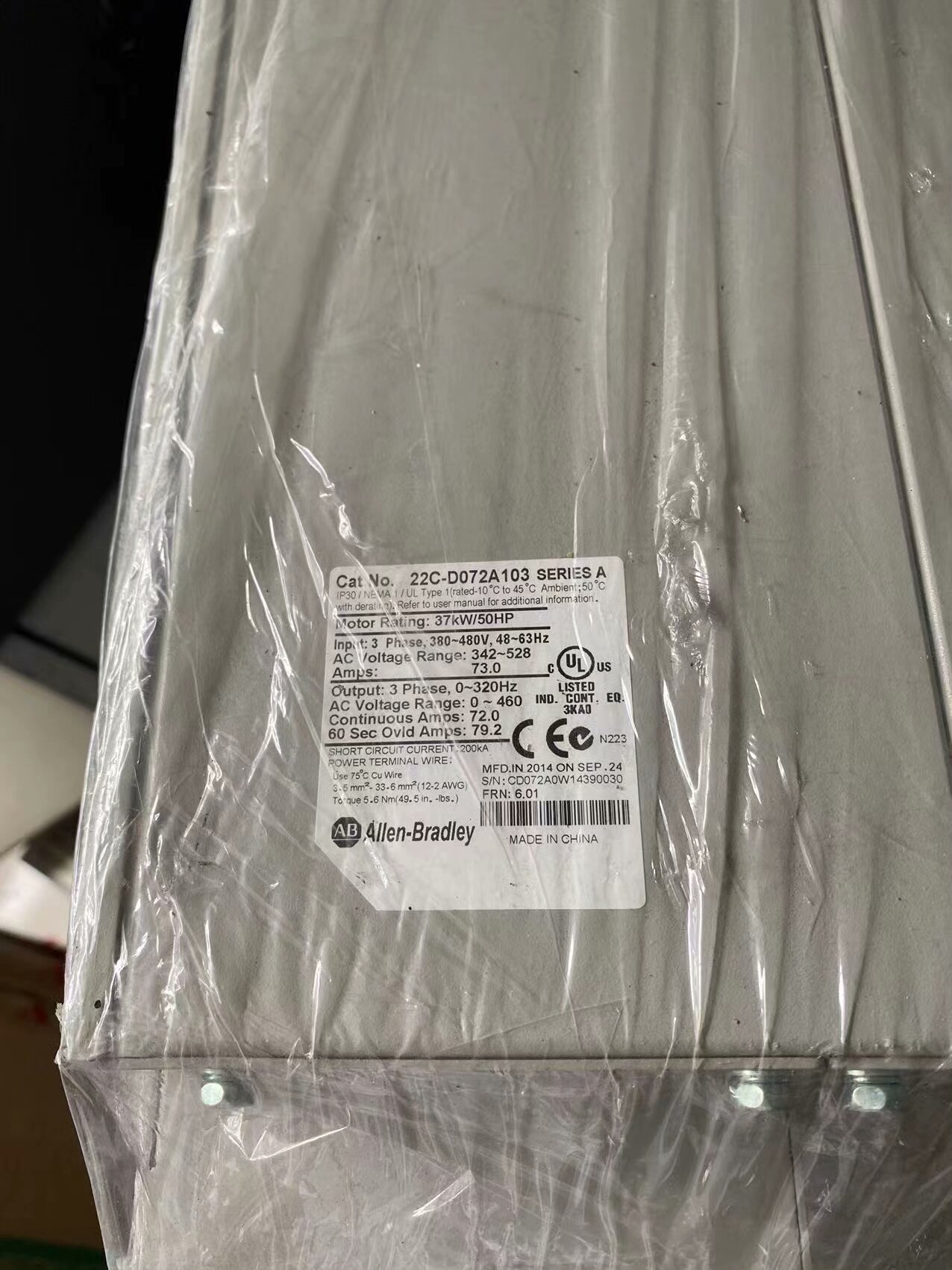 > AB罗克韦尔变频器22C-D072A103 37kw/380