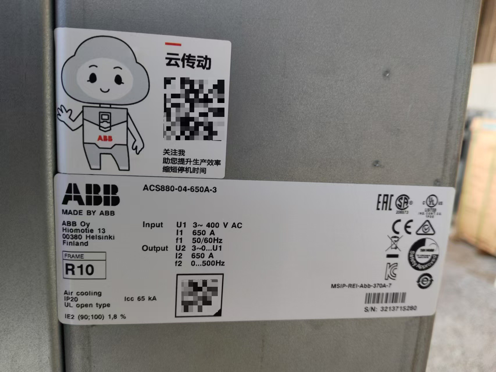 > ABB变频器ACS880-04-650A-3,355KW国企