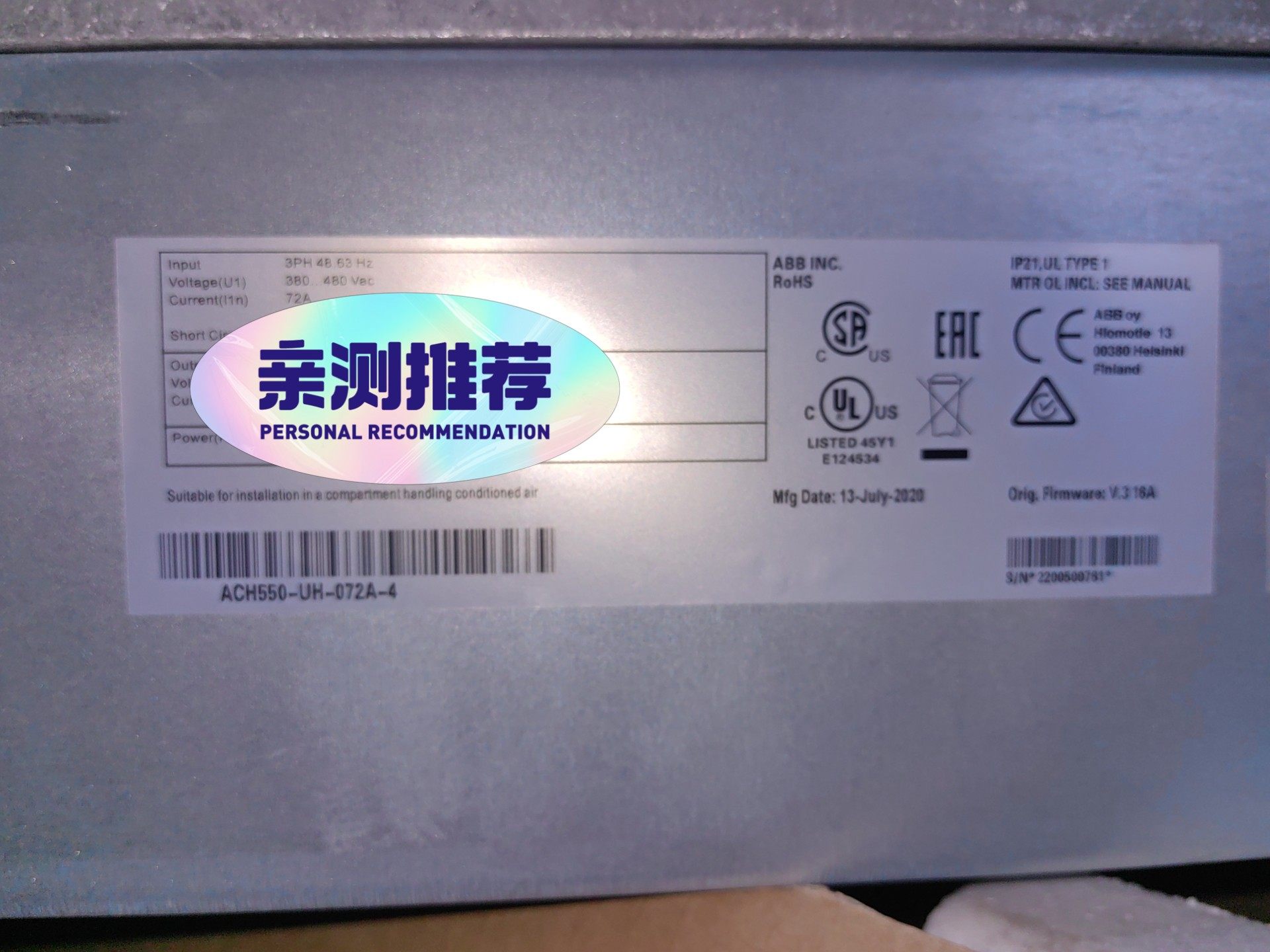 > ABB变频器 ACH550-UH-072A-4,37kW大功