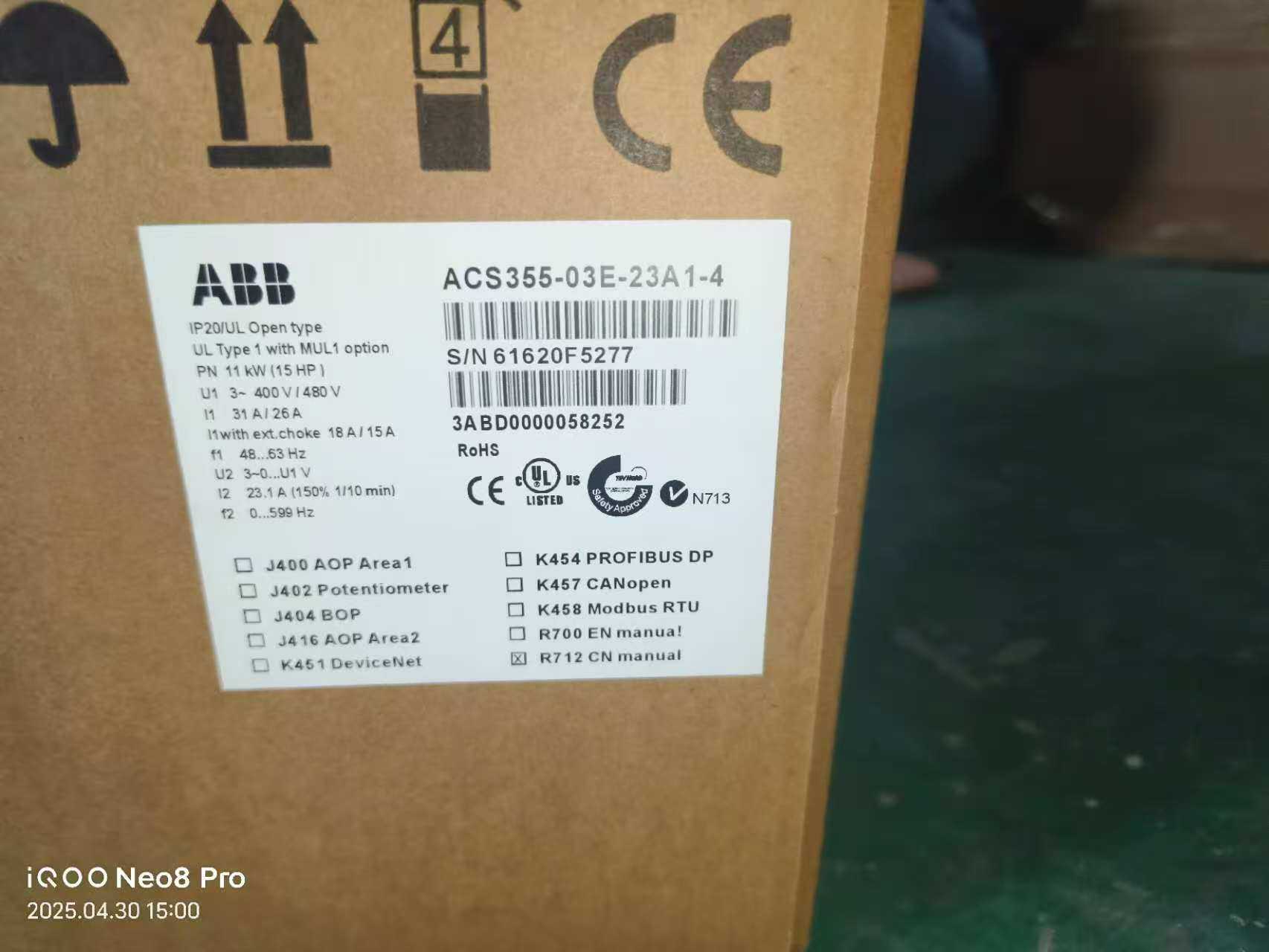 ABB变频器ACS355-03E-23A1-4,11KW,三