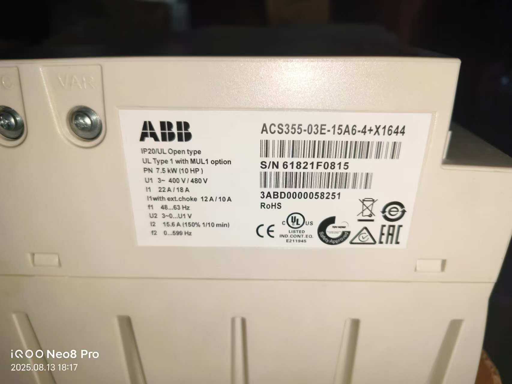 > ABB变频器ACS355-03E-15A6-4,7.5kW功