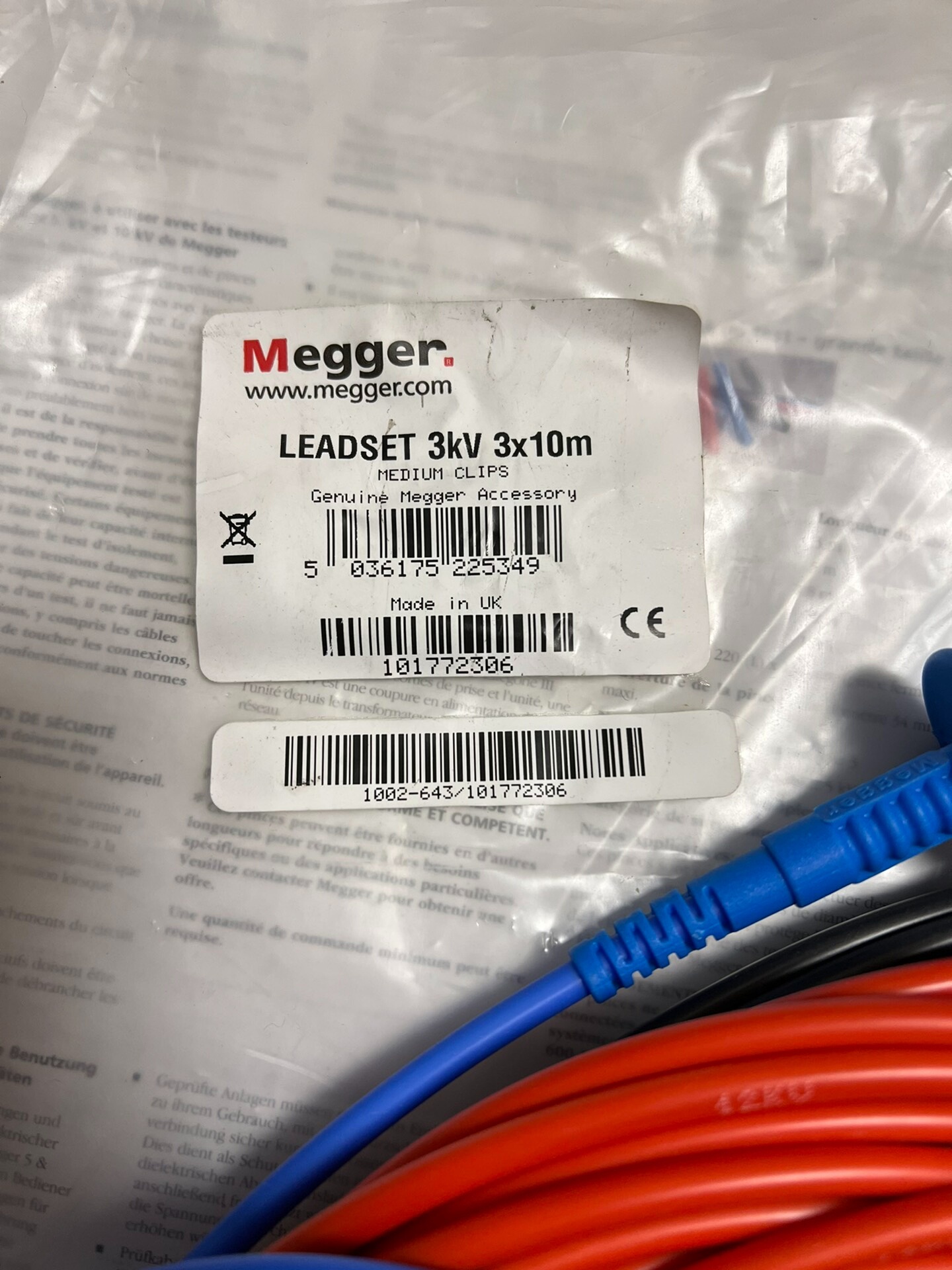 Megger10米原装测试线1套现货。此测试线是中号夹子,适
