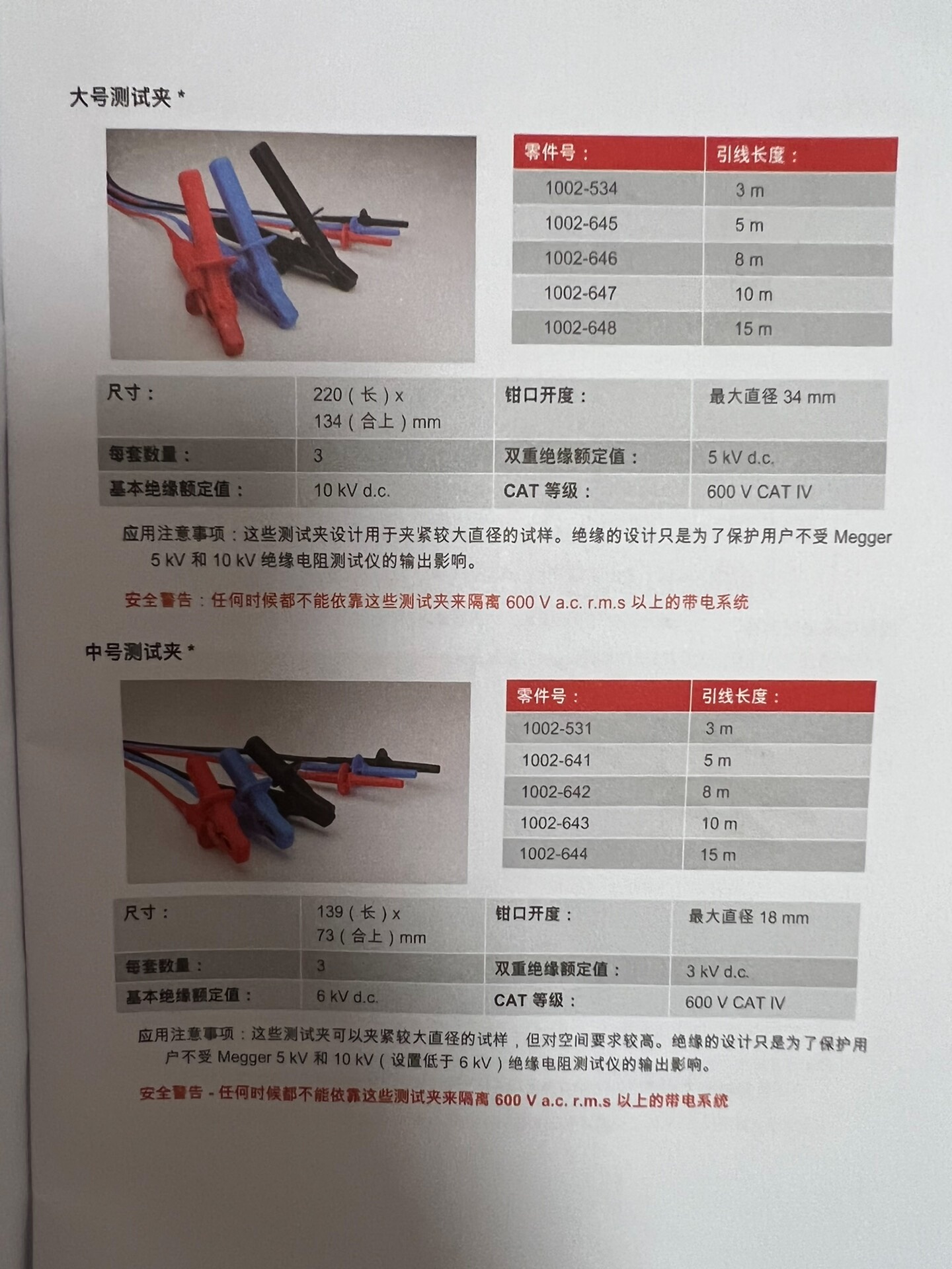 > Megger10米原装测试线1套现货。此测试线是中号夹子,适