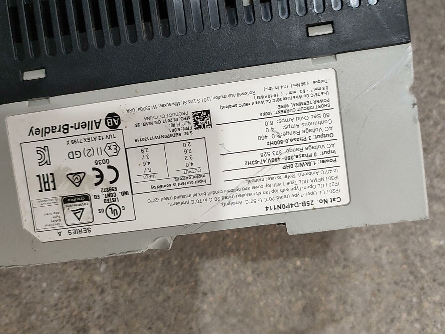 > AB变频器25B-D4P0N104,1.5kw/380v,二