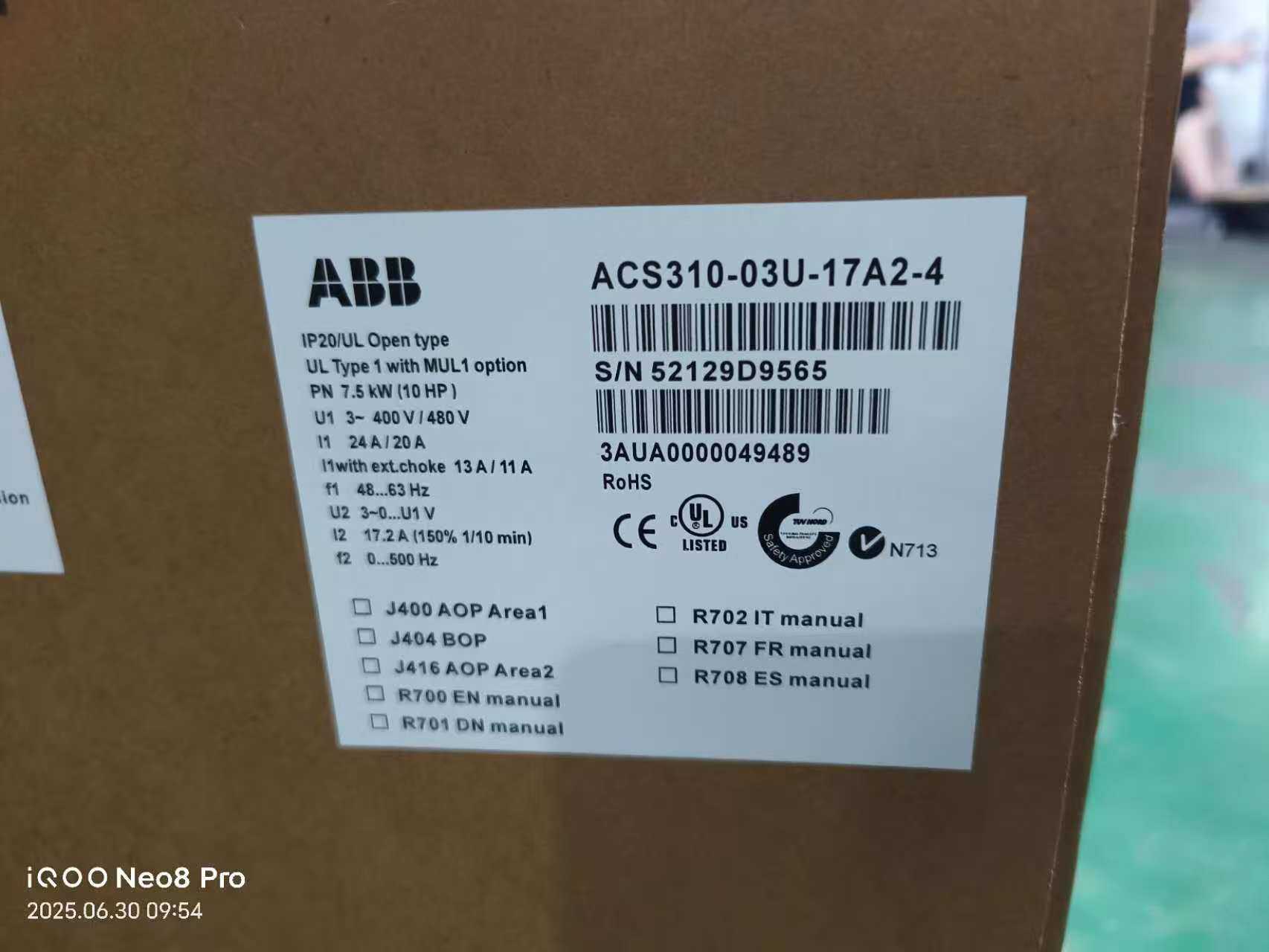 > ABB变频器ACS310-03U-17A2-4,7.5kW,