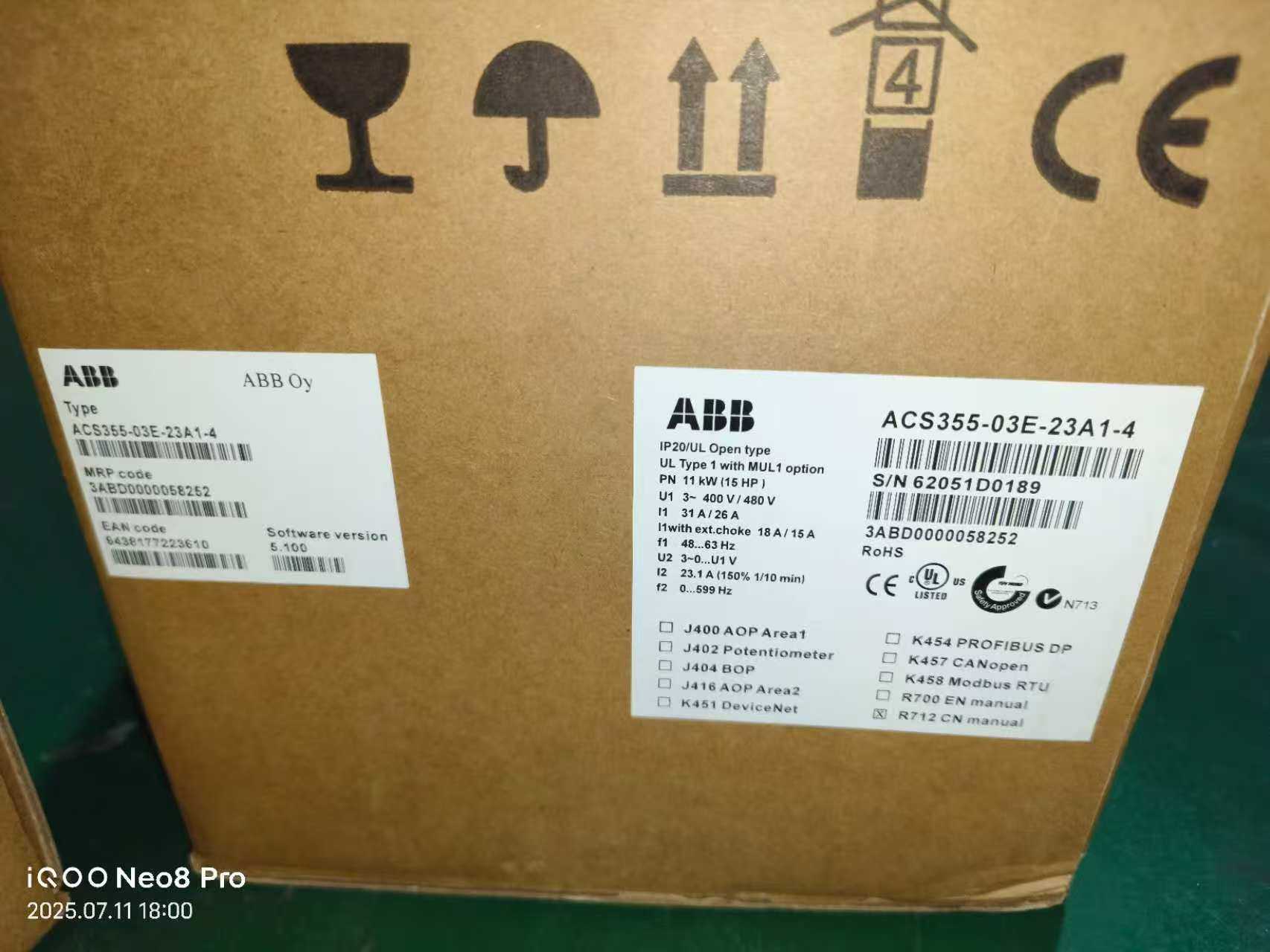 ABB变频器ACS355-03E-23A1-4,11kW功率