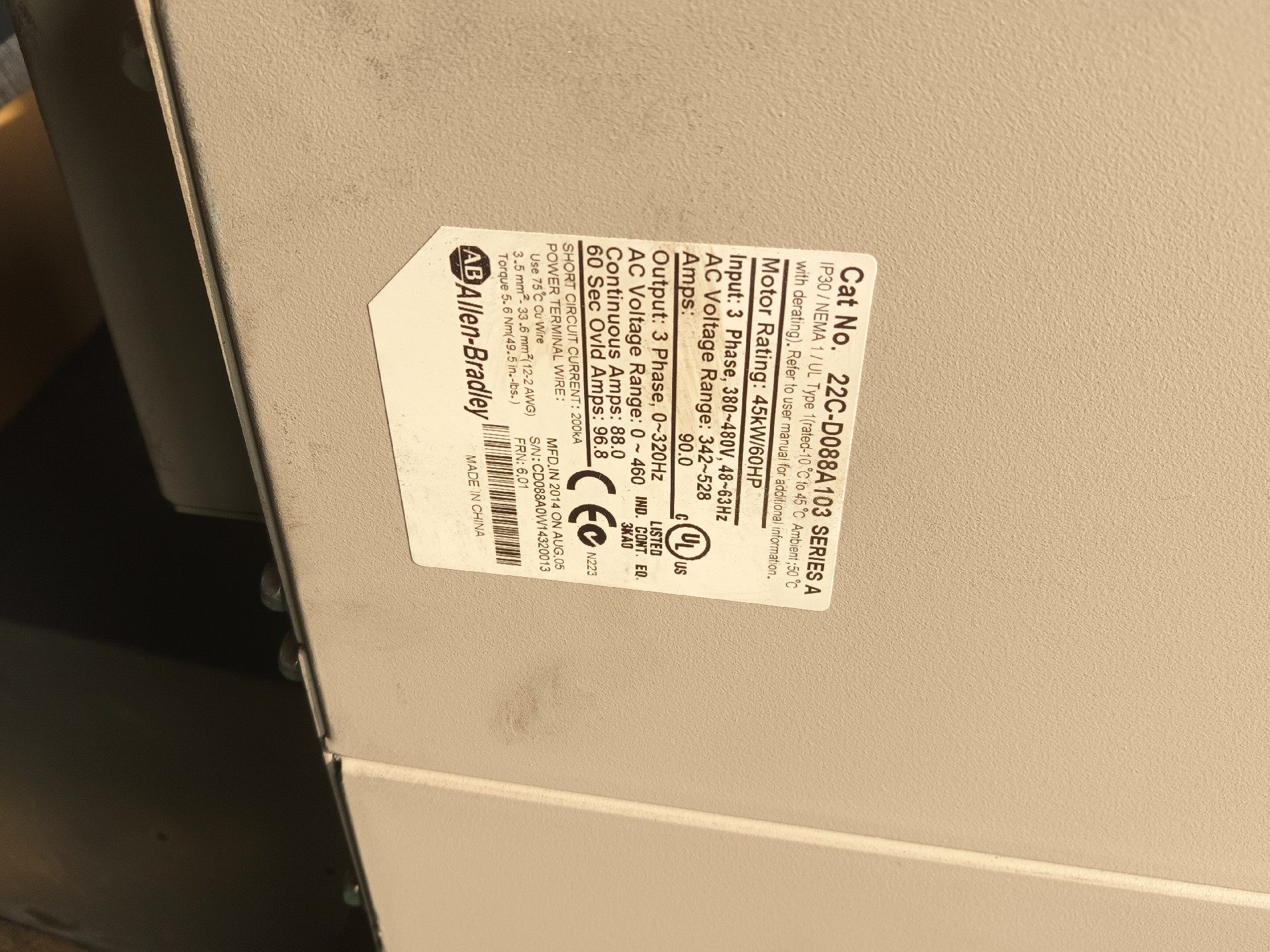 > 变频器AB罗克韦尔45KW变频器,22C-D088A103功