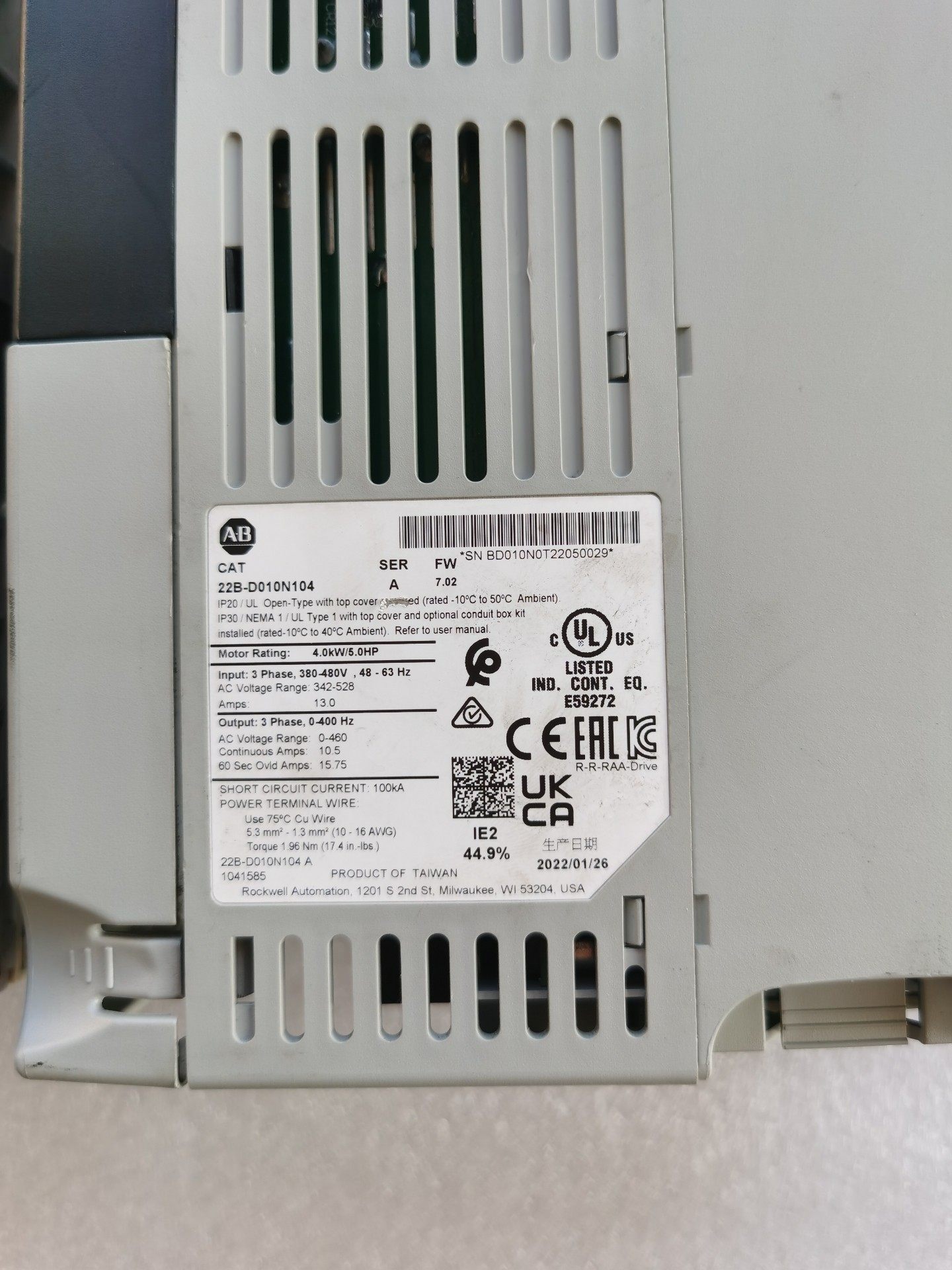 > AB罗克韦尔22B-D010N104频器