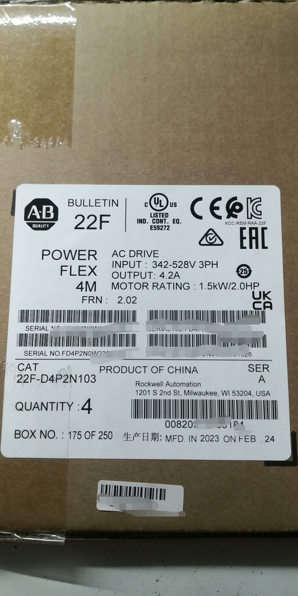 AB罗克韦尔22A-D1P4N104变频器 库存型号多多,