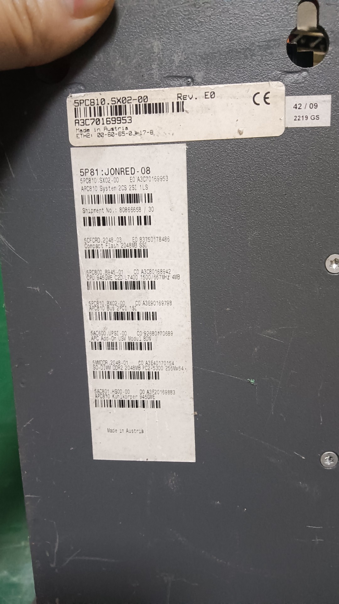 > 贝加莱工控机5PC810.SX02-00,拆机成色好,功能完