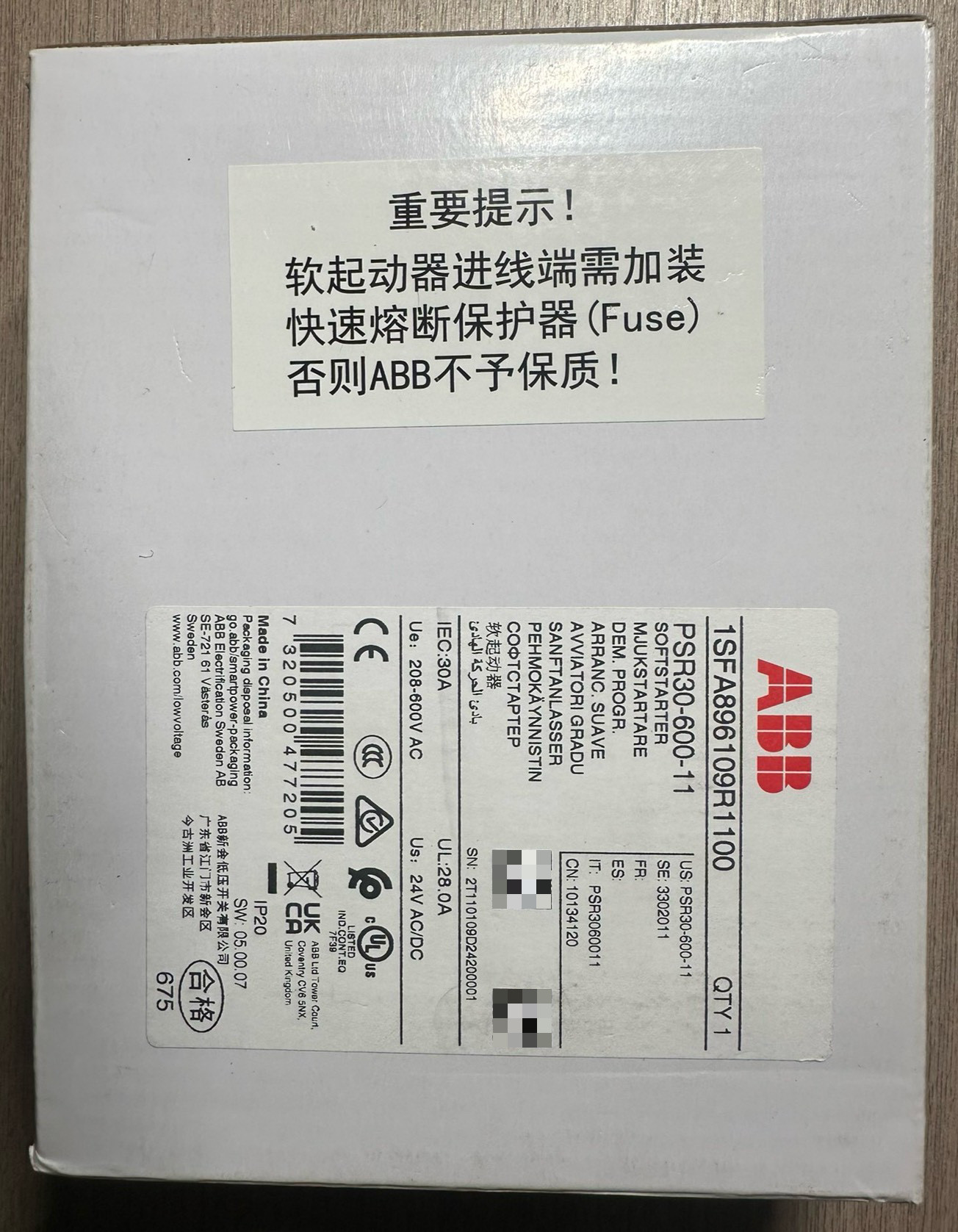 > ABB软起动器1SFA896109R1100,PSR30-6