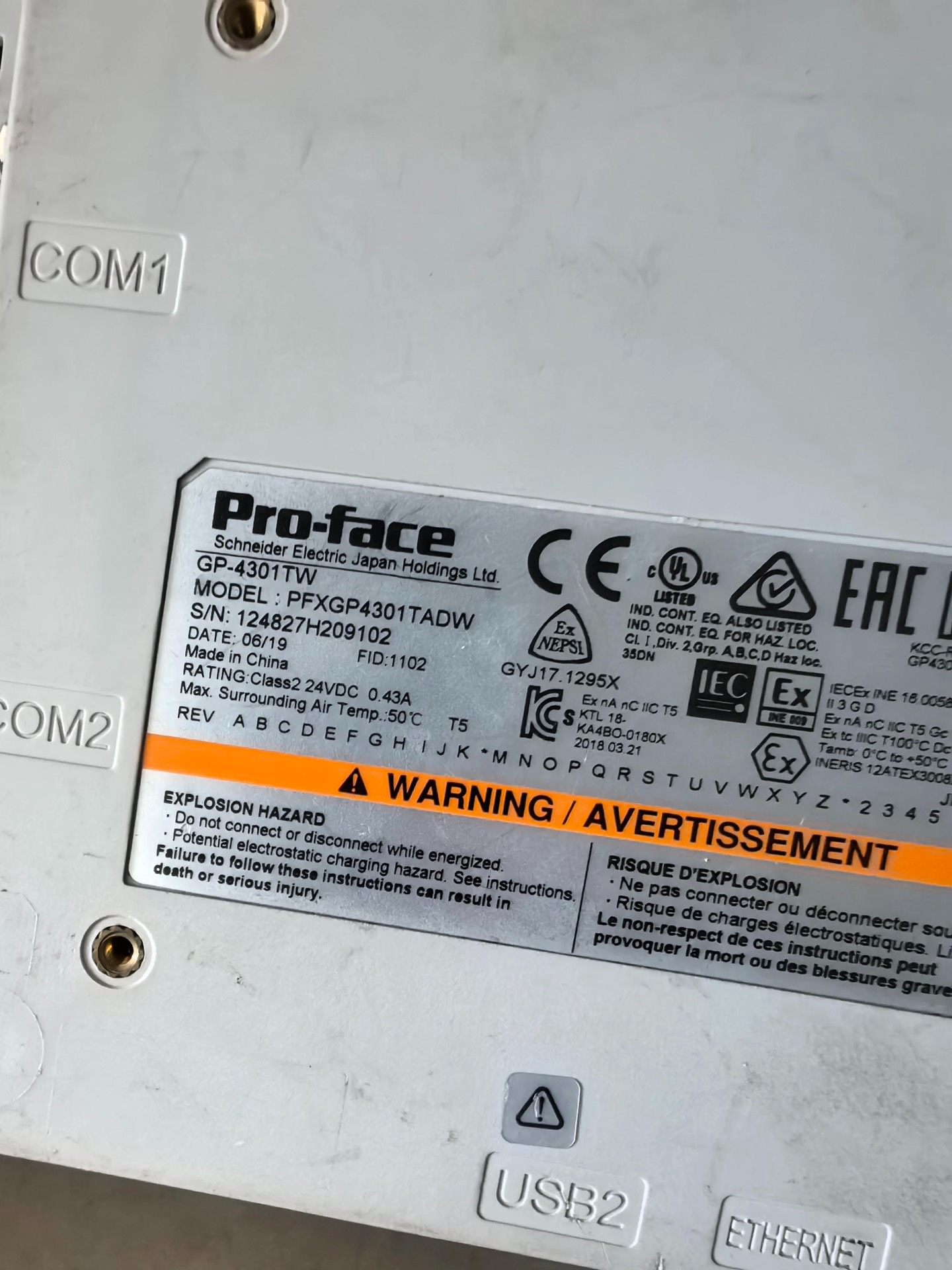 > 普洛菲斯触摸屏GP-4301TW,型号PFXGP4301TA